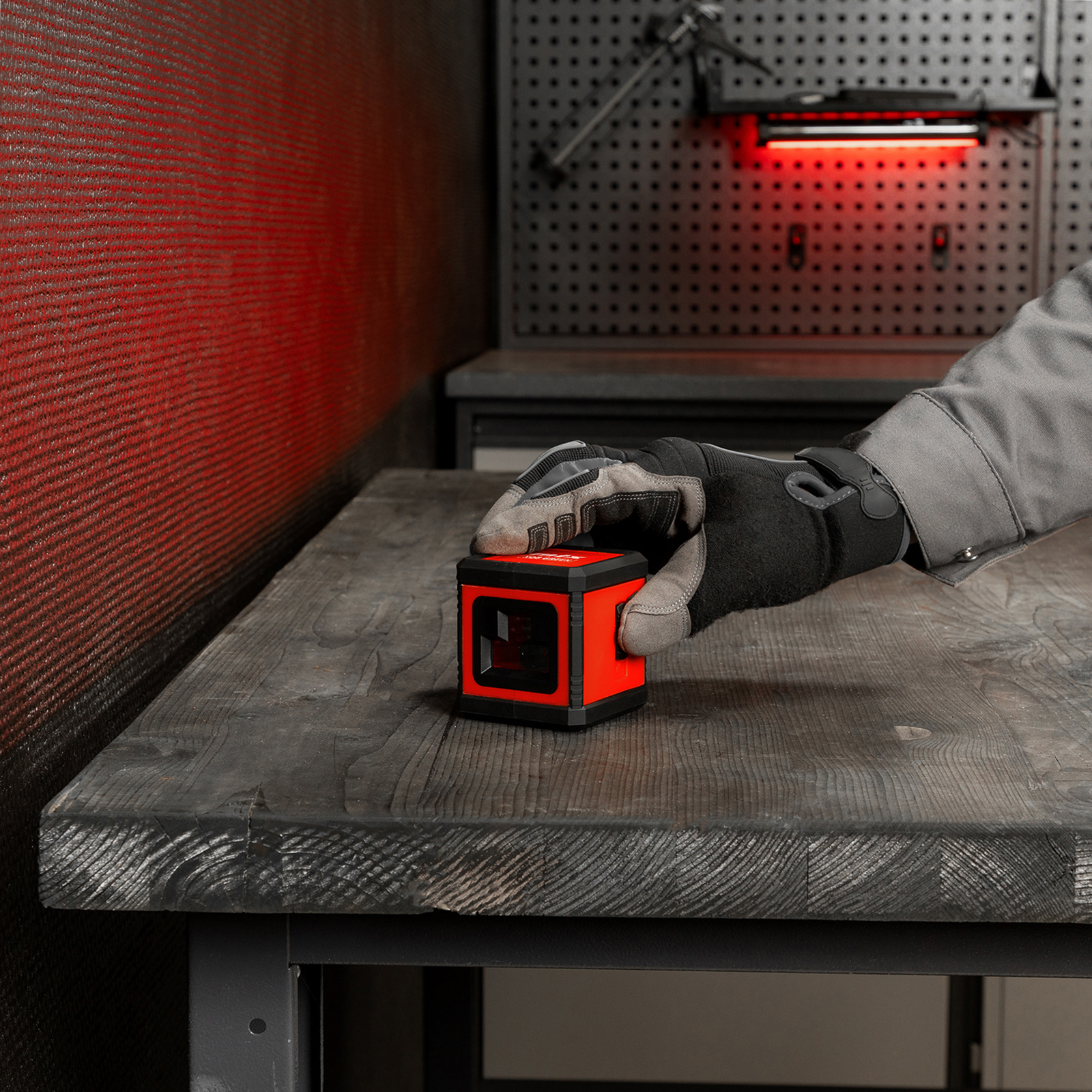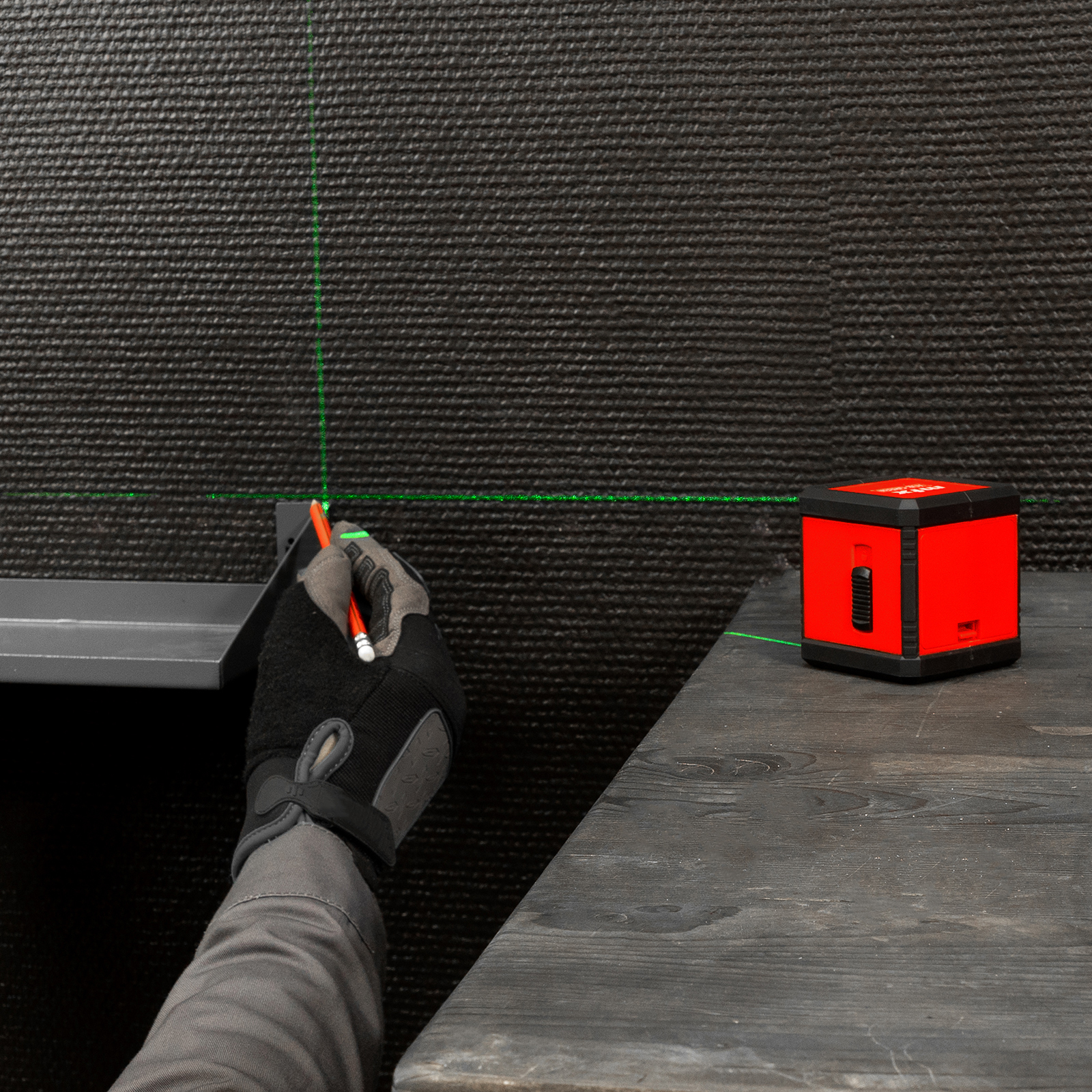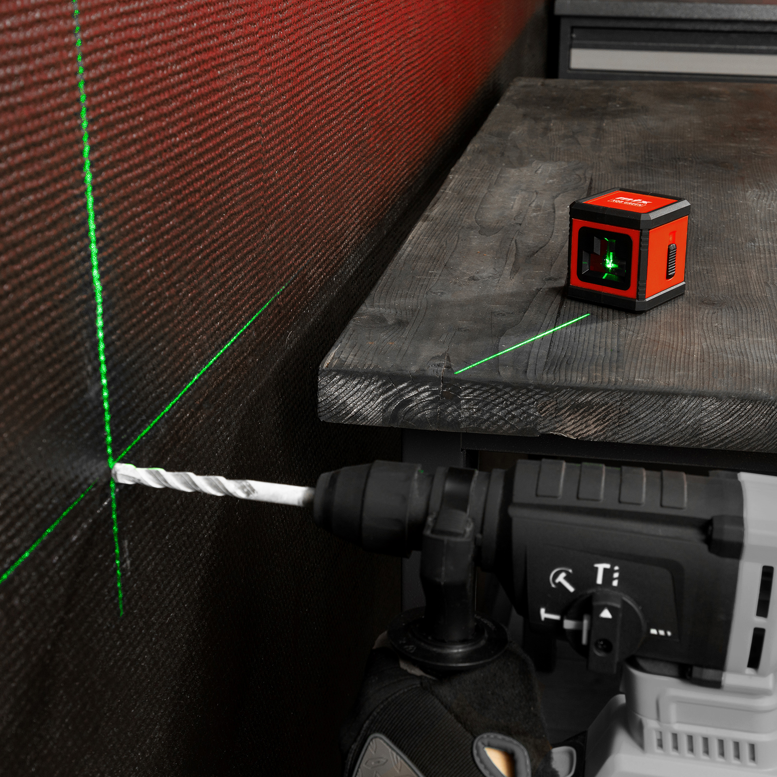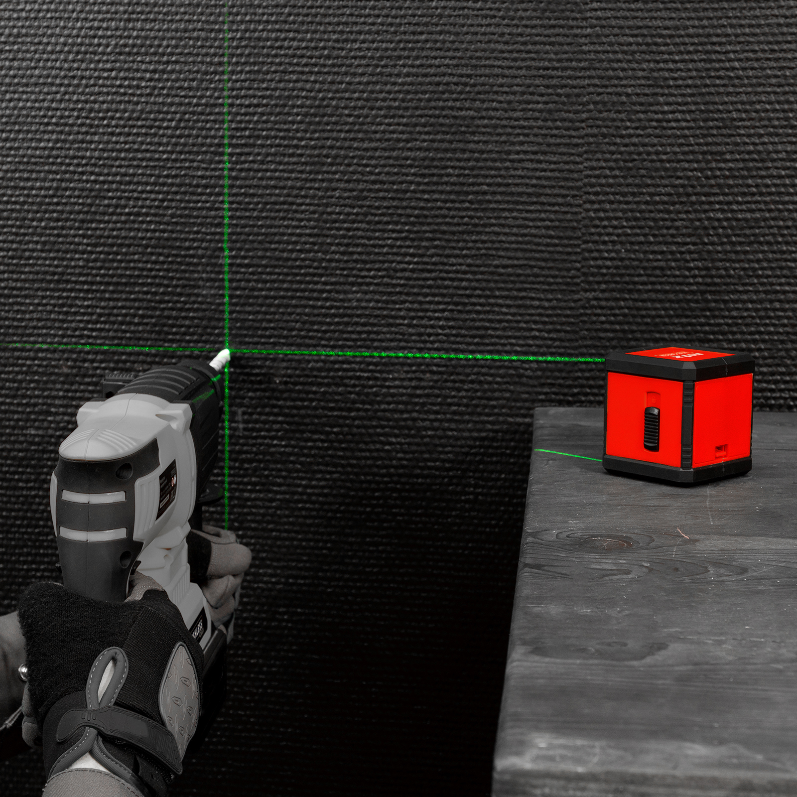 - Надежность и долговечность — корпус дополнен специальными прорезиненными гранями, демпфирующими при падении лазерного уровня.