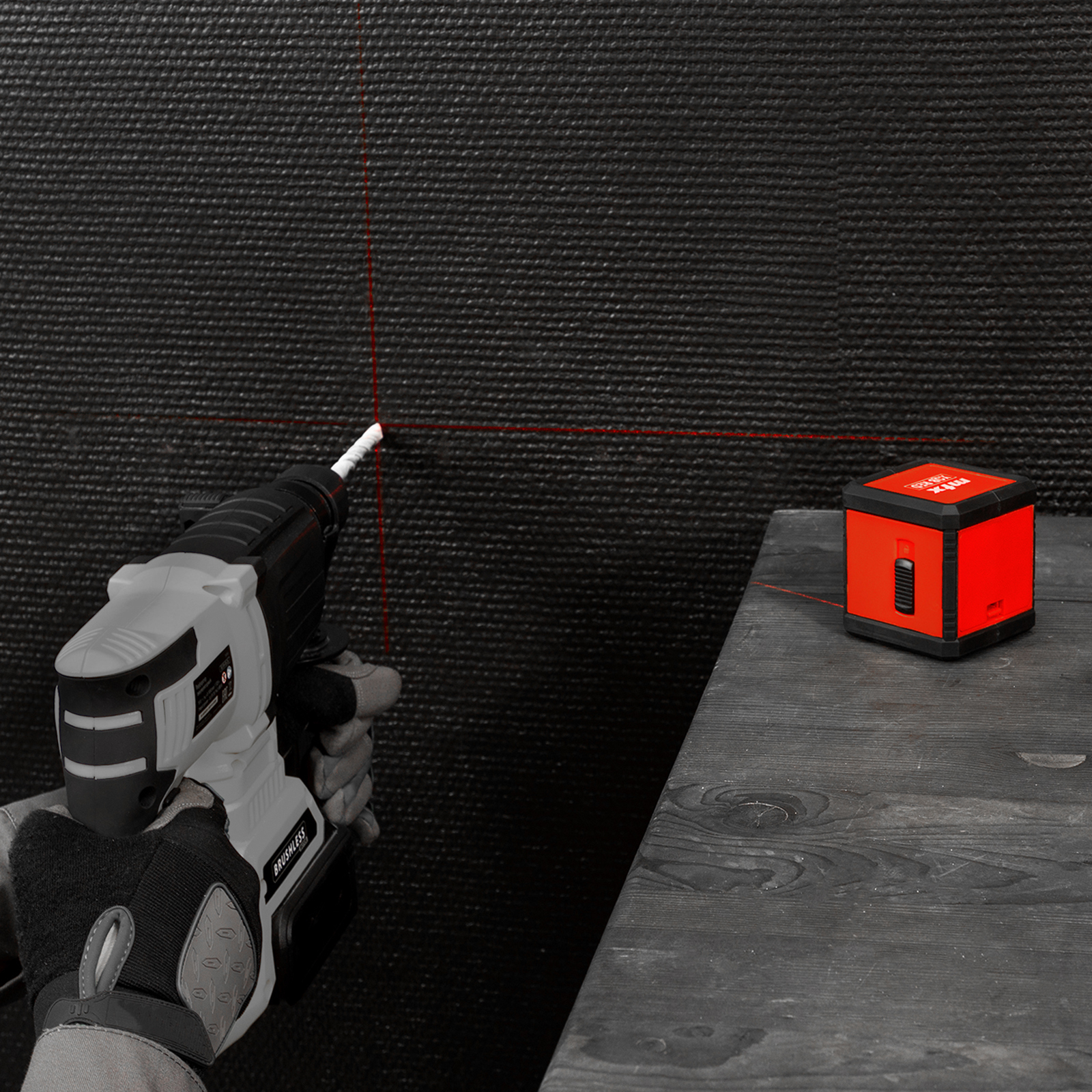 - Надежность и долговечность — корпус дополнен специальными прорезиненными гранями, демпфирующими при падении лазерного уровня.