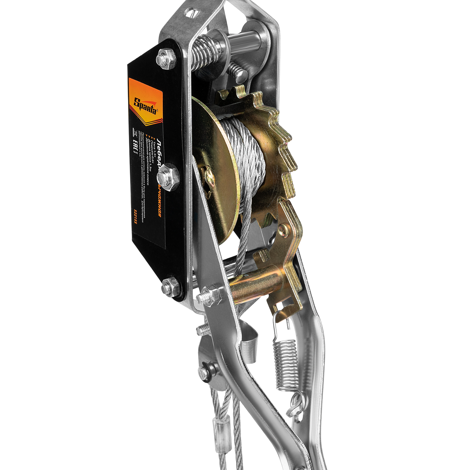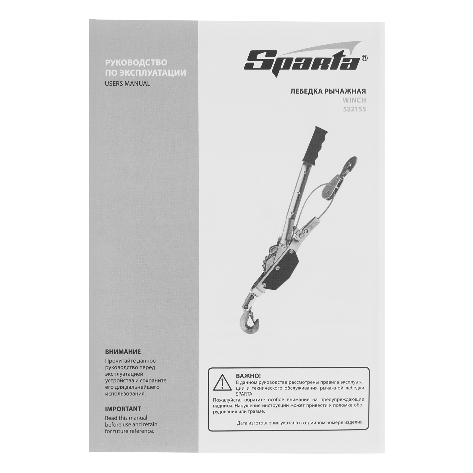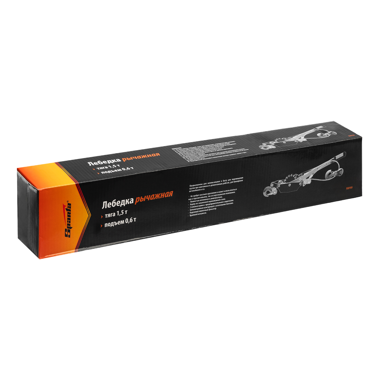 <p>Рычажная лебедка Sparta 522155, тяга - 1,5 т, подъем - 0,6 т, с одинарным храповым колесом, используется для поднятия и передвижения грузов в вертикальной, горизонтальной и наклонной плоскости. Это незаменимое устройство для автомобилистов, используемое при необходимости эвакуации авто. Также она пригодится в быту в процессе погрузочных работ. Рычажный механизм не требует больших физических усилий от оператора.</p><h2>Преимущества</h2><ul><li>Храповый тормоз обеспечивает безопасность груза, не допуская его падения.</li><li>Стальной трос диаметром 4,2 мм устойчив к разрыву (при соблюдении условий эксплуатации), что повышает безопасность работы.</li><li>Крюки оборудованы защитными скобами, которые обеспечивают крепкое сцепление с грузом, исключая риск его высвобождения.</li></ul>