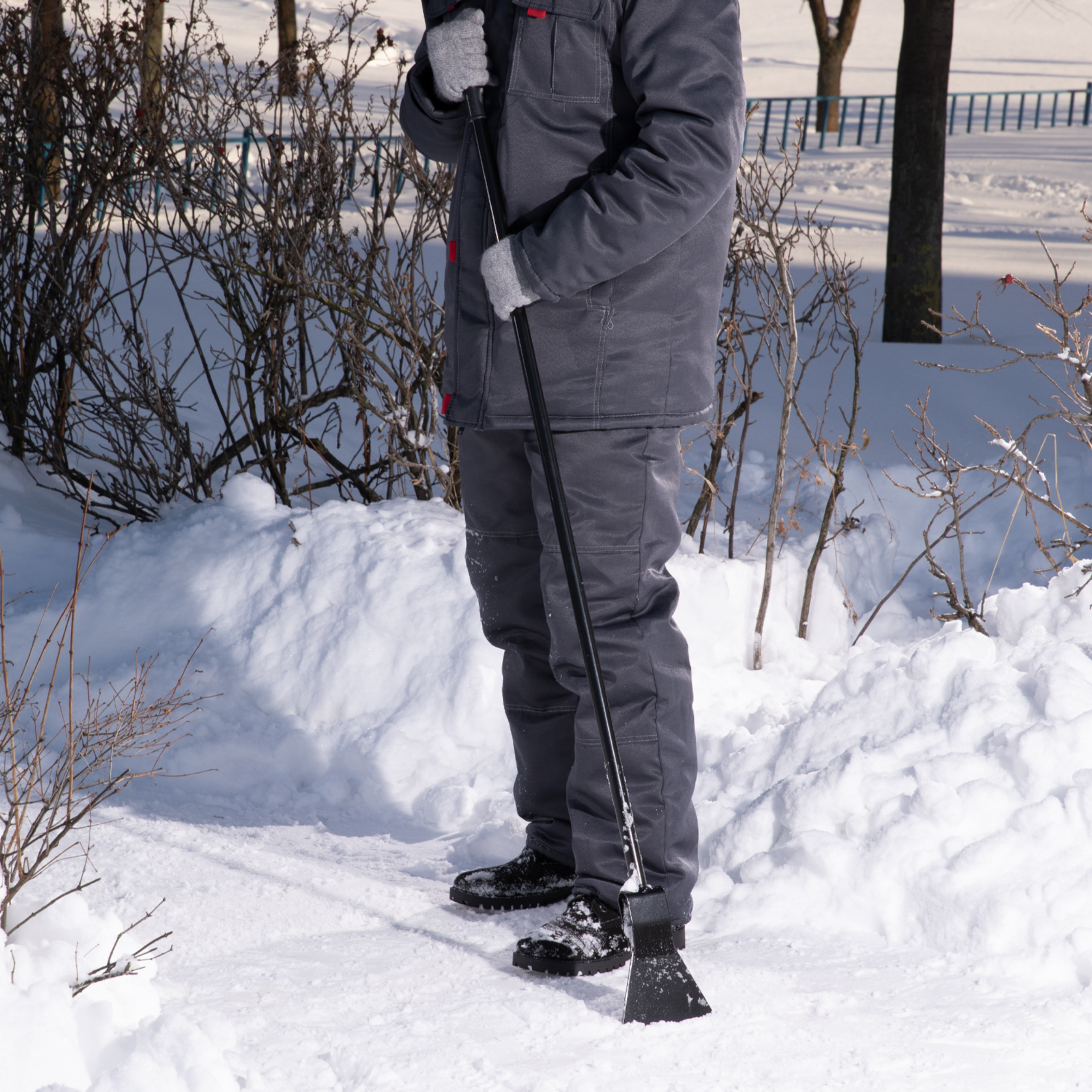 Ледоруб-топор Сибртех 61519 с рабочей частью шириной 150 мм, весом 1,4 кг, с металлическим черенком, позволяет удалить тонкий слой наледи со ступенек, крыльца, дорожек и т.д. Он предназначен для хозяйственного применения, пригодится дворникам, владельцам авто и дачникам. Ледоруб подходит для эксплуатации при температуре до -60 °С.