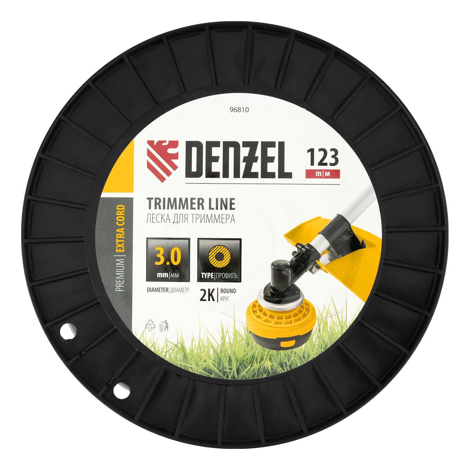 Леска для триммера двухкомпонентная круглая, 3,0мм х 123м, на DIN катушке EXTRA CORD Denzel