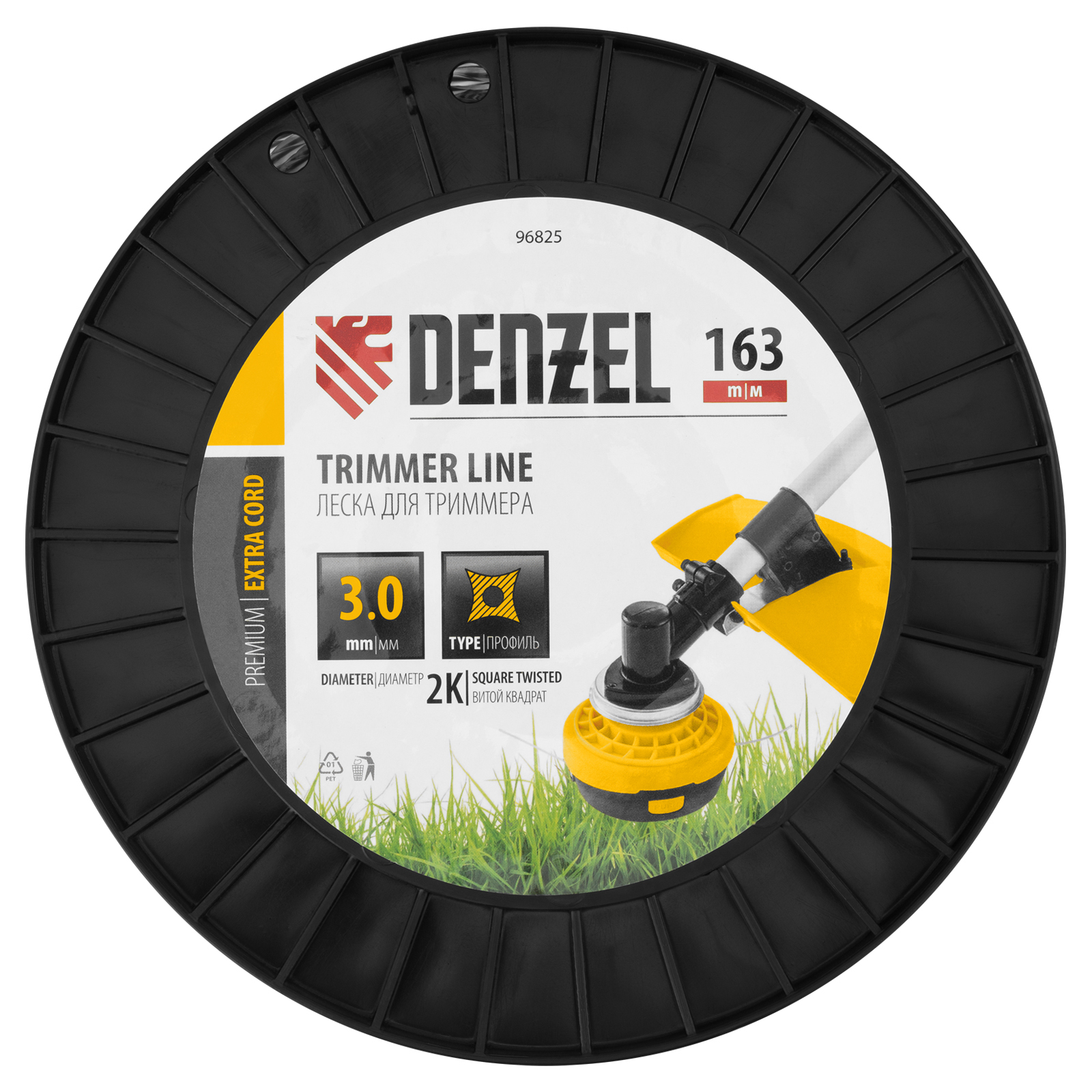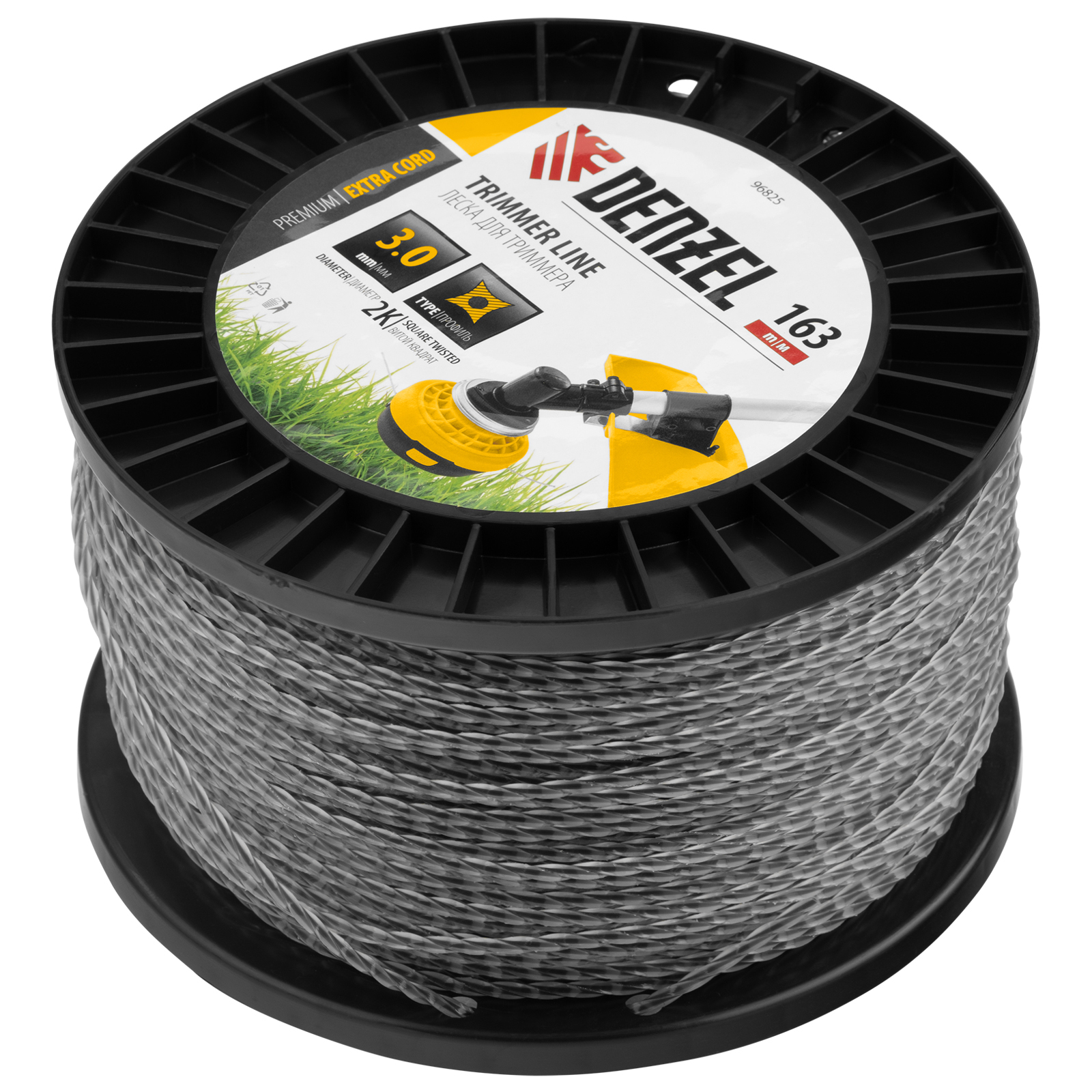 Леска для триммера двухкомпонентная витой квадрат, 3,0мм х 163м, на DIN катушке EXTRA CORD Denzel