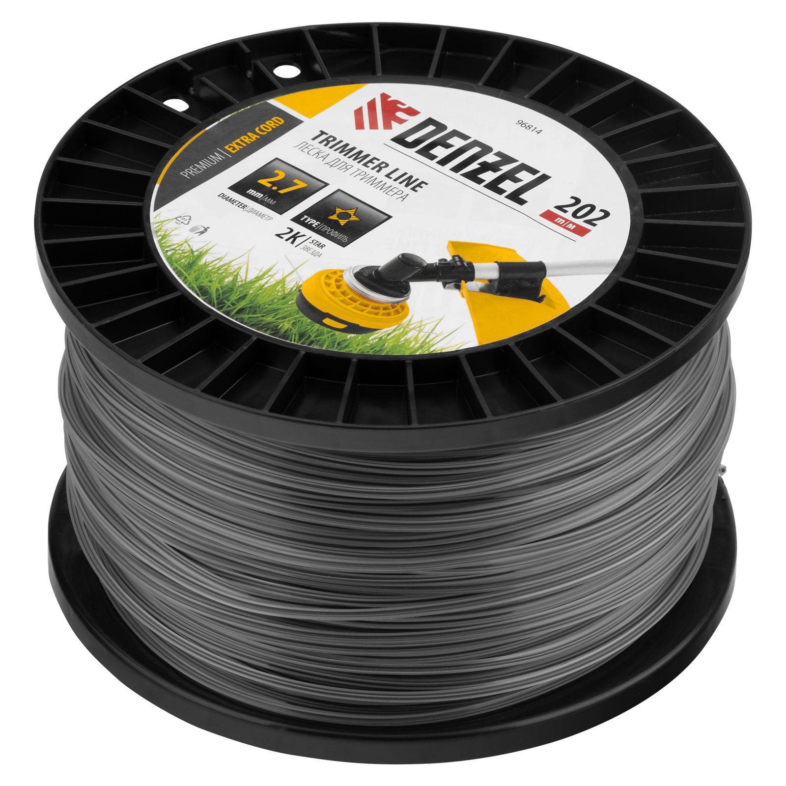 Леска для триммера двухкомпонентная звезда, 2,7мм х 202м, на DIN катушке EXTRA CORD Denzel