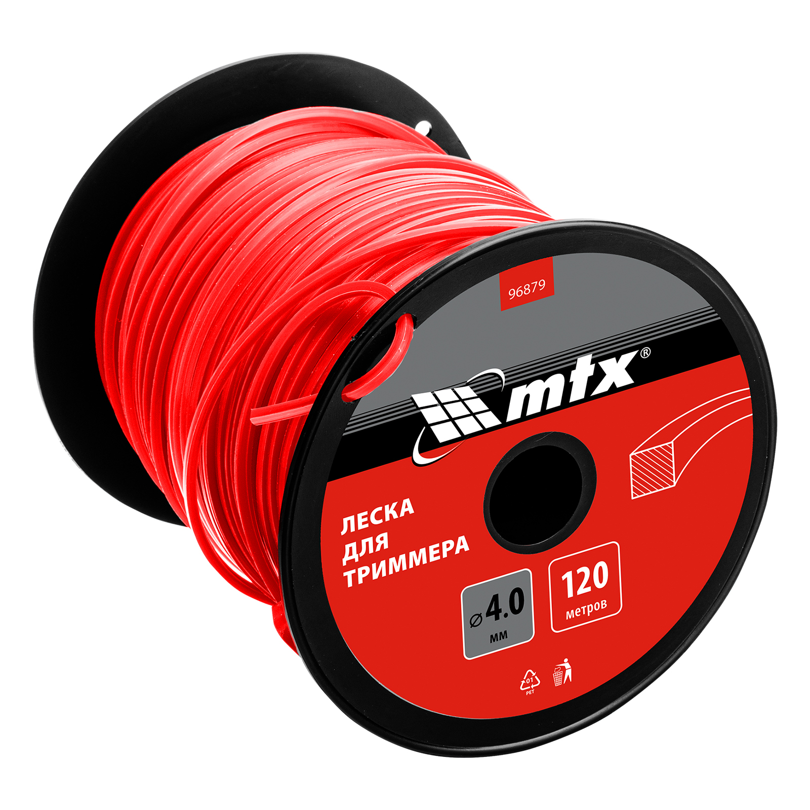 Леска для триммера MTX 96879 квадратного сечения, толщиной 4,0 мм и длиной 120 м, поставляется на катушке и позволяет скашивать мягкую, молодую траву, а также густую и жесткую растительность. С ее помощью можно справляться с сорняками, сухой травой и побегами кустарников. Леска используется в качестве режущего элемента для мощных бензиновых триммеров. Пригодится на дачном участке, а также для ухода за газонами на придомовой территории, в скверах и т.д.