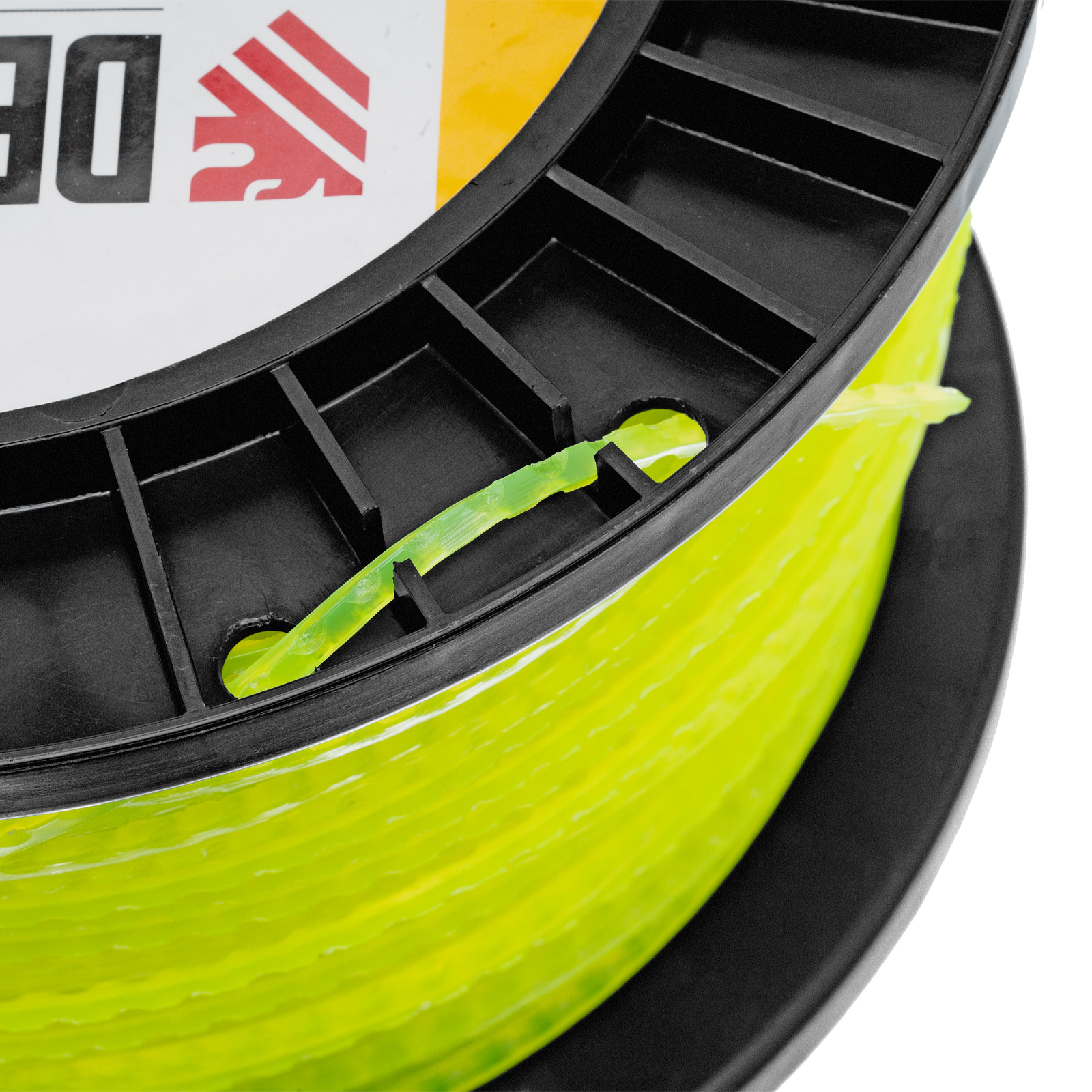 - Удобное хранение и транспортировка — концы лески можно закрепить в специальных отверстиях DIN-катушки.