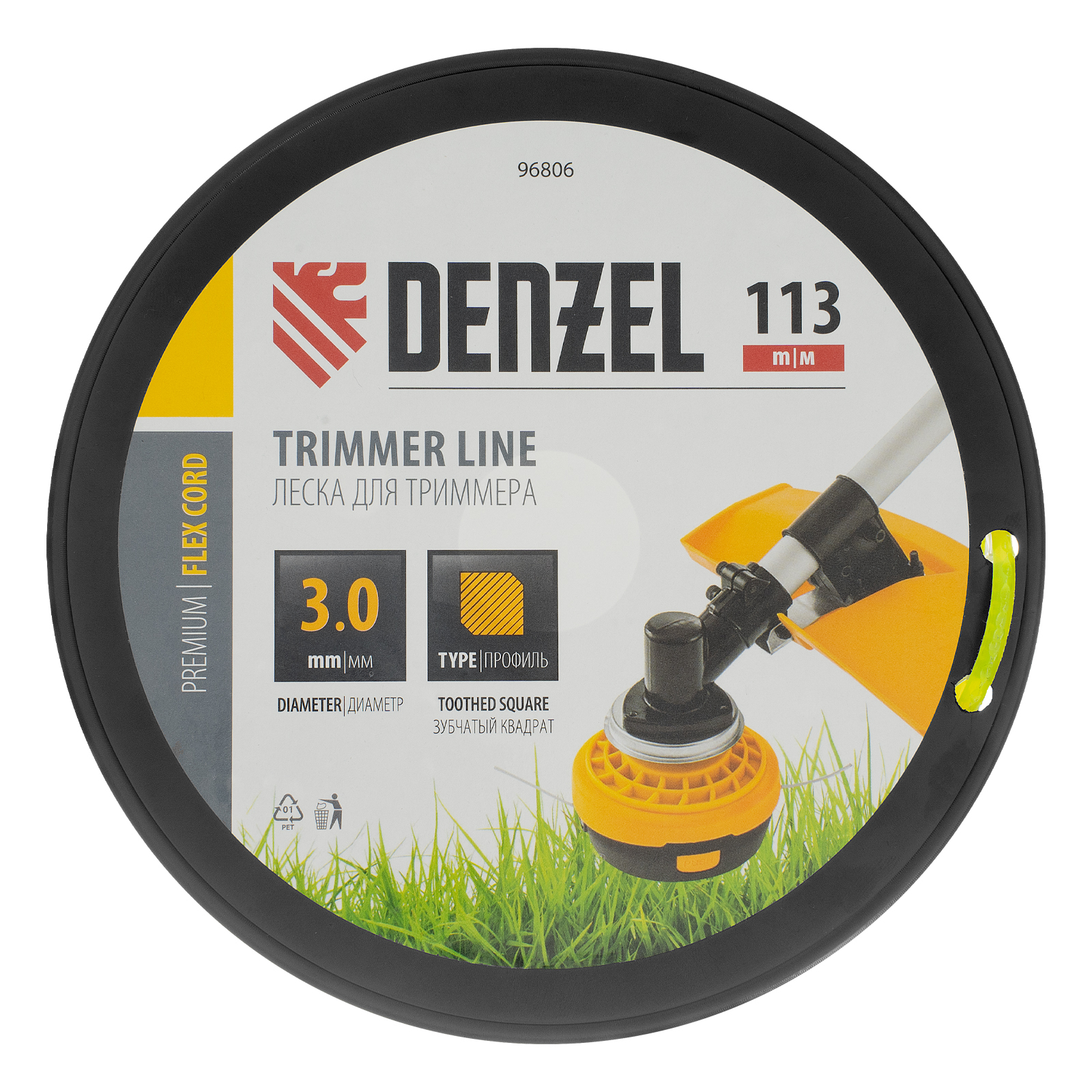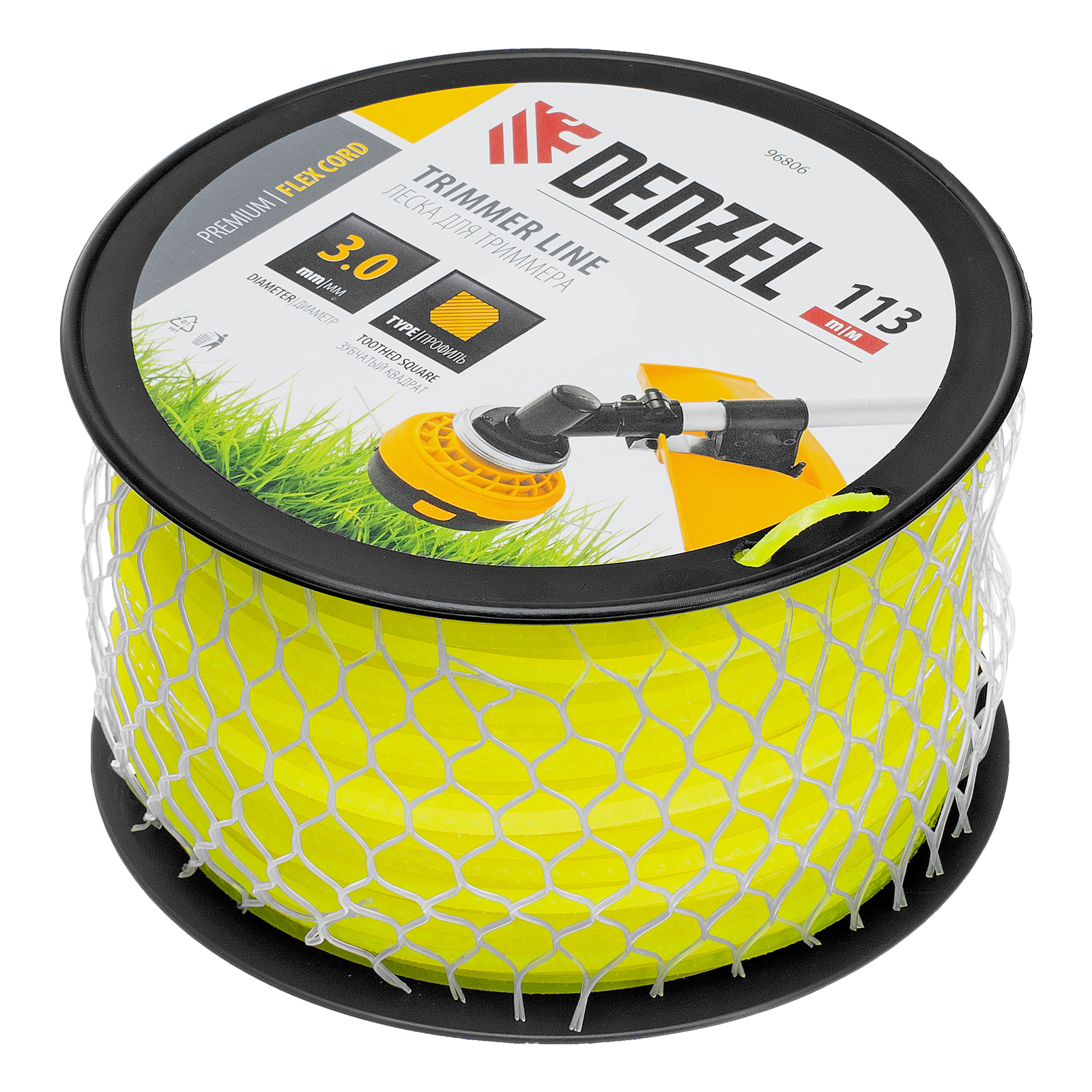 Леска для триммера зубчатый квадрат, 3,0мм х 113м, на DIN катушке FLEX CORD Denzel