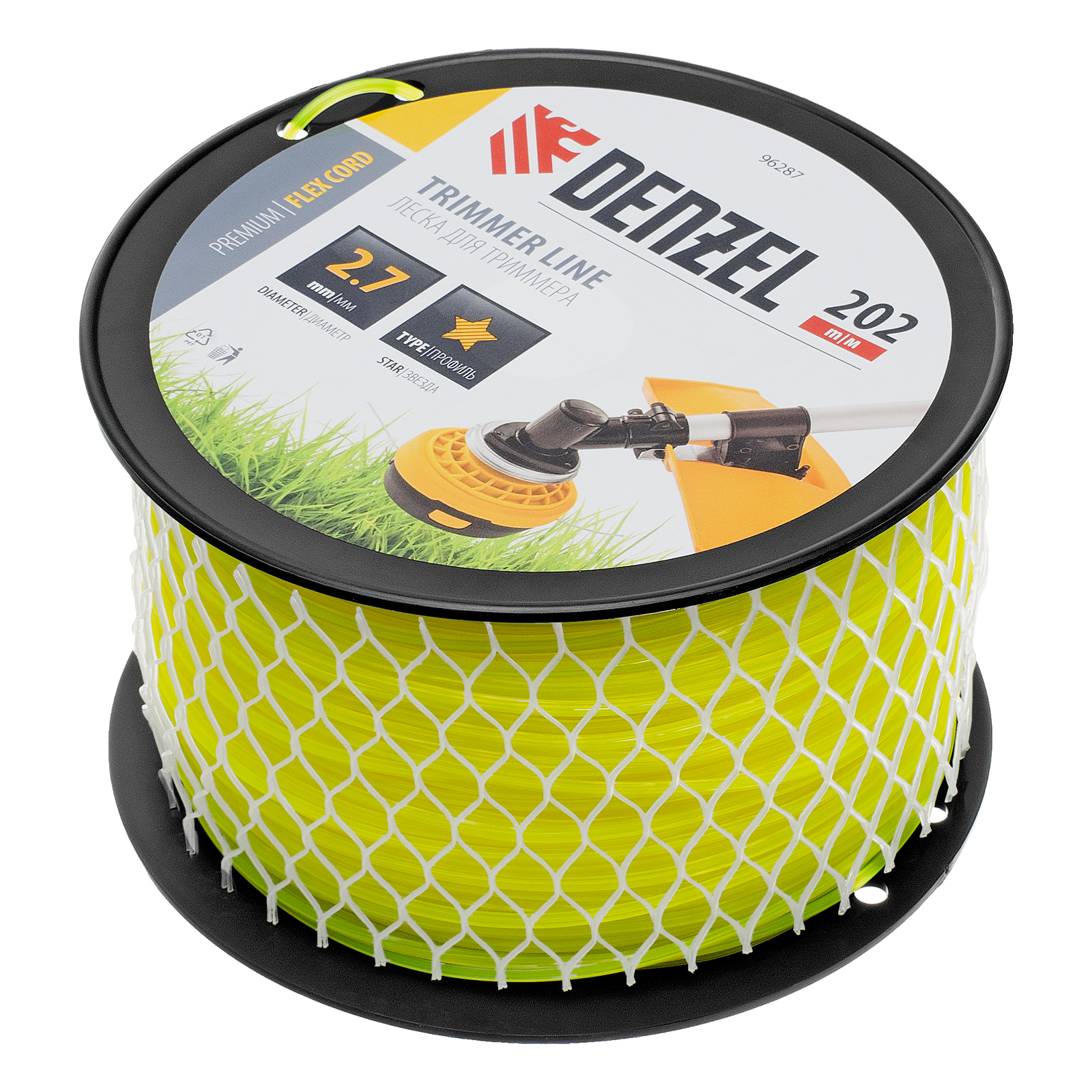 Леска для триммера Denzel FLEX CORD 96287 с сечением «звезда», диаметром 2,7 мм и длиной 202 м, на DIN-катушке, предназначена для скашивания газонной травы, также справляется с крупностеблевой растительностью. Эффективна даже на замусоренной территории. Заправляется в катушку бензиновых триммеров с объемом двигателя 25-52 см3.
