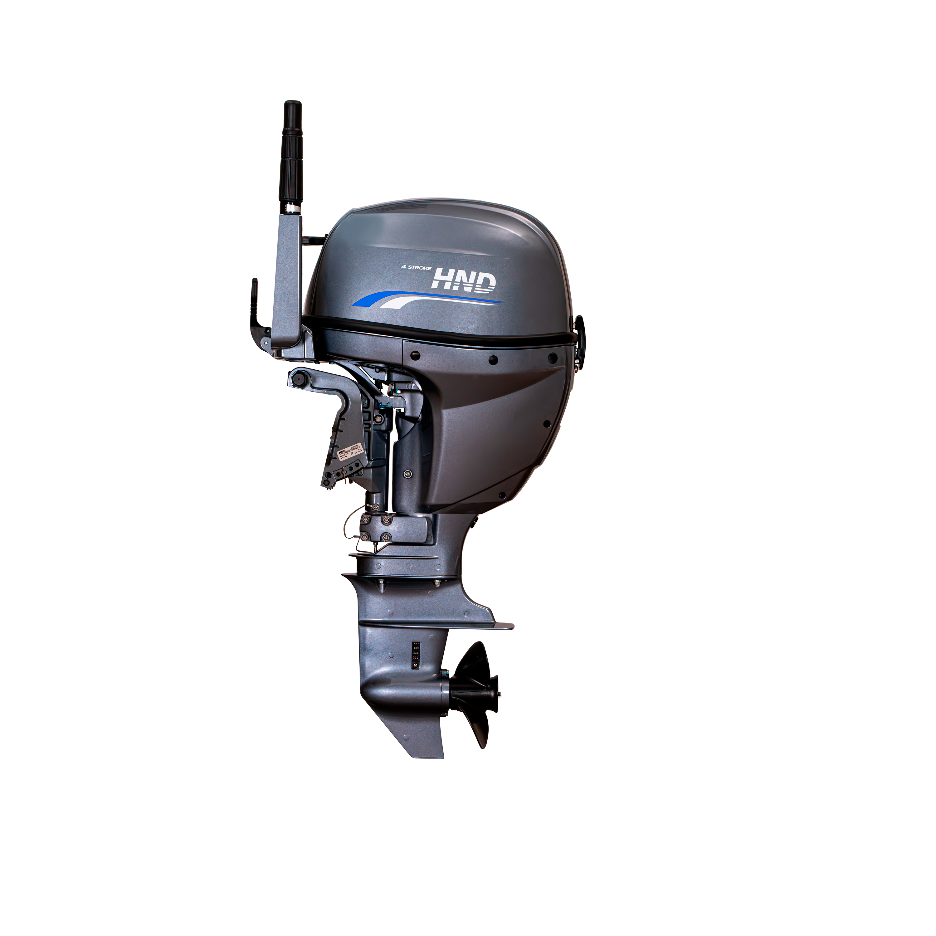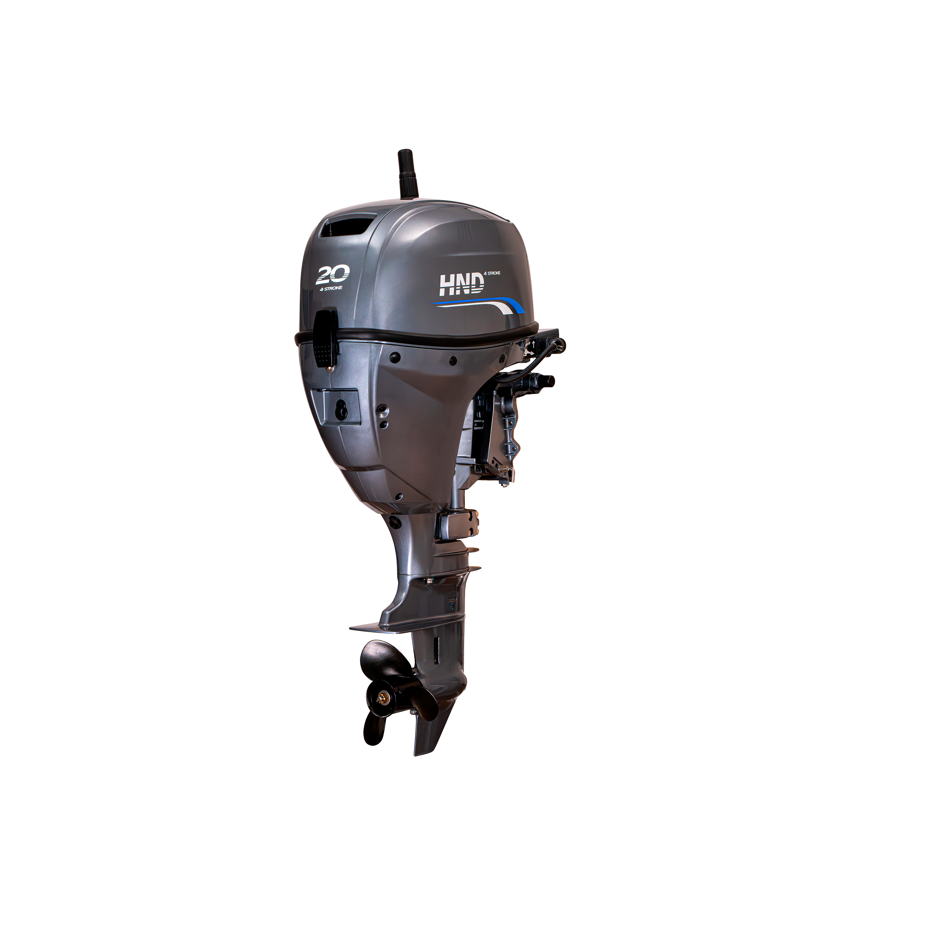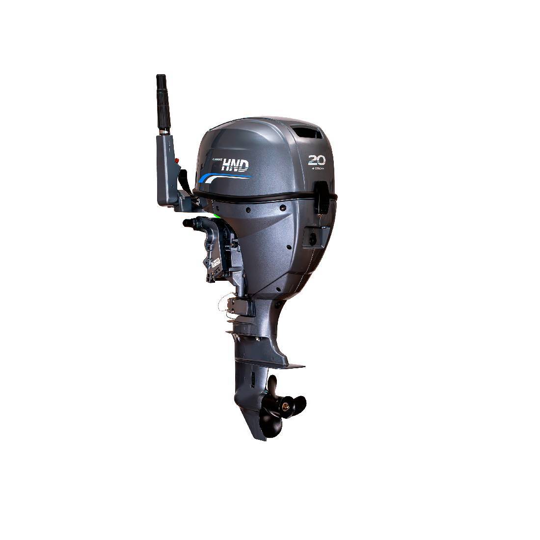 HND OB 20 FHS оснащен румпельным типом управления с ручным запуском и коротким дейдвудом. Топливным баком емкостью 12 литров для комфортной заправки и водяным охлаждением лодочного мотора. Вращение гребного винта стандартное.