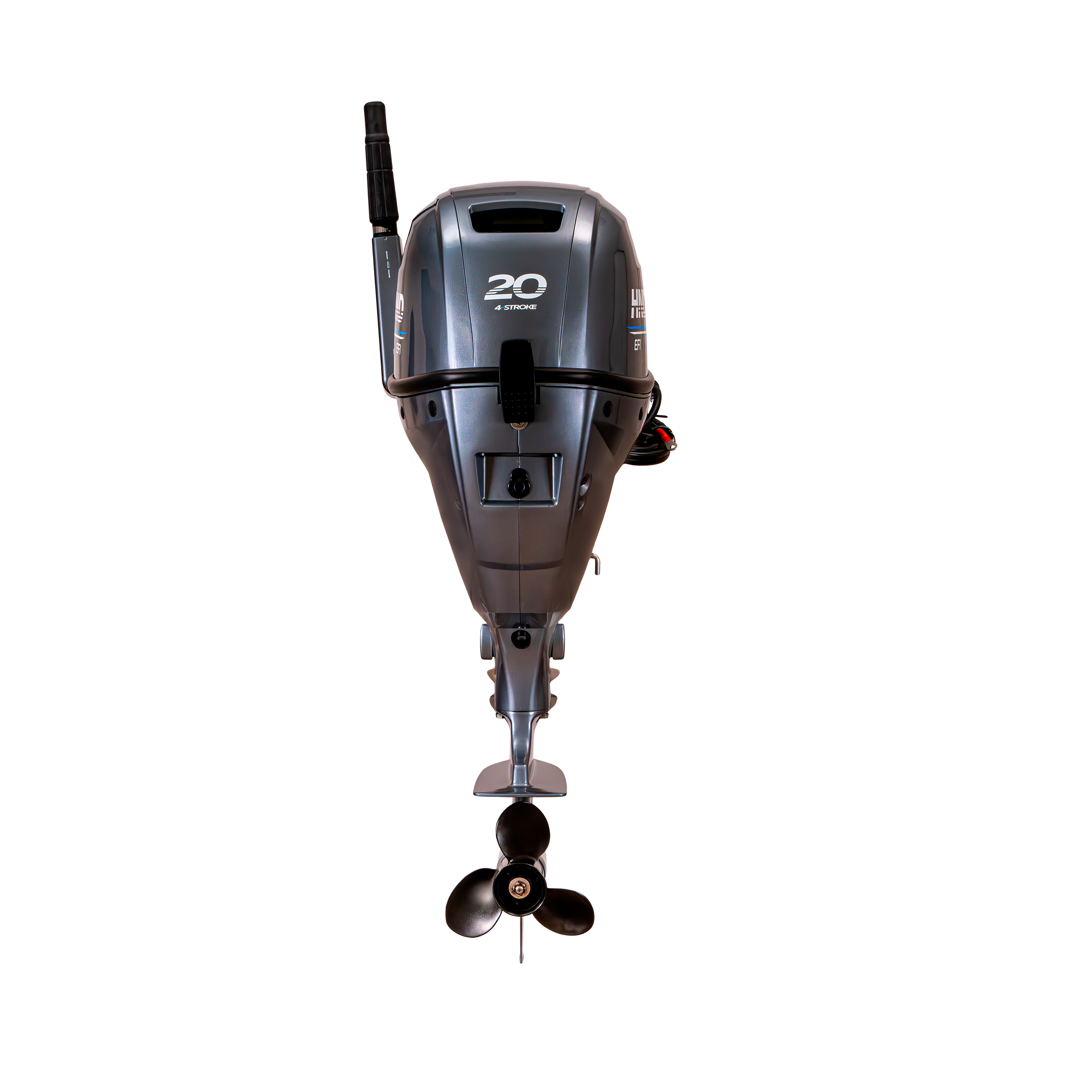 HND OB 20 FIEHS оснащен румпельным типом управления с электростартером и коротким дейдвудом. Топливным баком емкостью 12 литров для комфортной заправки и водяным охлаждением лодочного мотора. Вращение гребного винта стандартное.