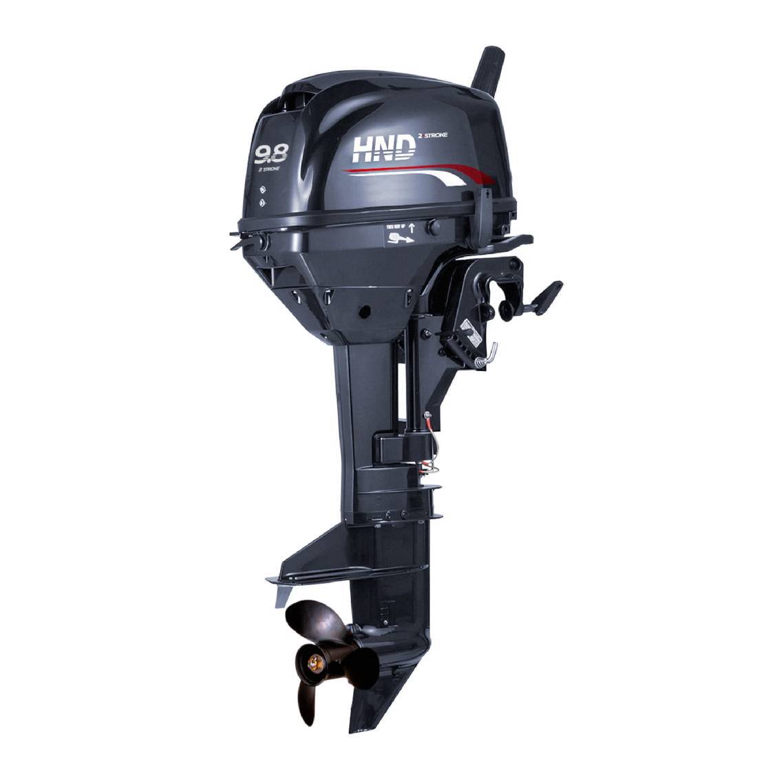 HND OB 9.8 HS оснащен коротким дейдвудом и румпельным типом управления с ручным стартером. Топливным баком емкостью 12 литров для комфортной заправки и водяным охлаждением лодочного мотора. Вращение гребного винта стандартное.