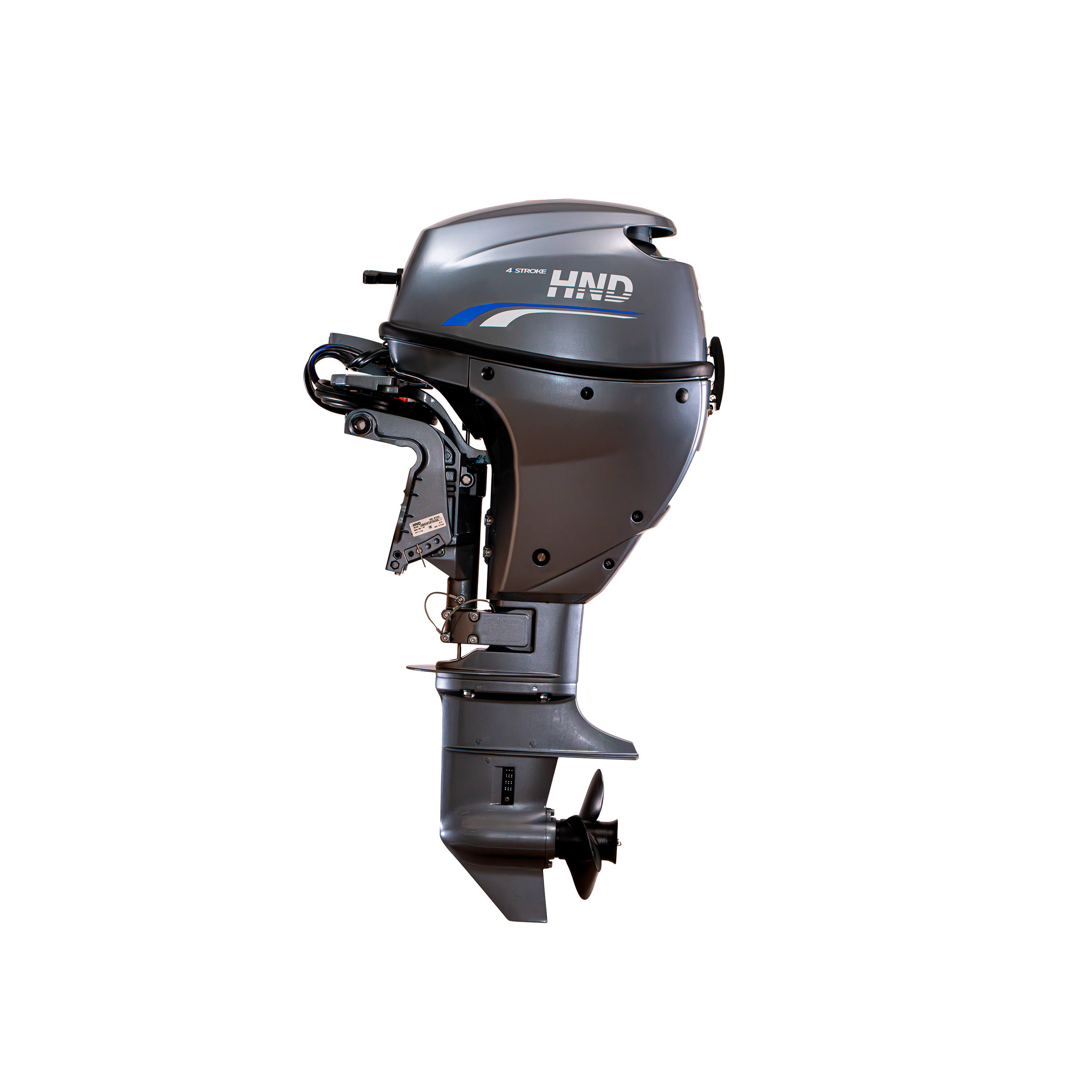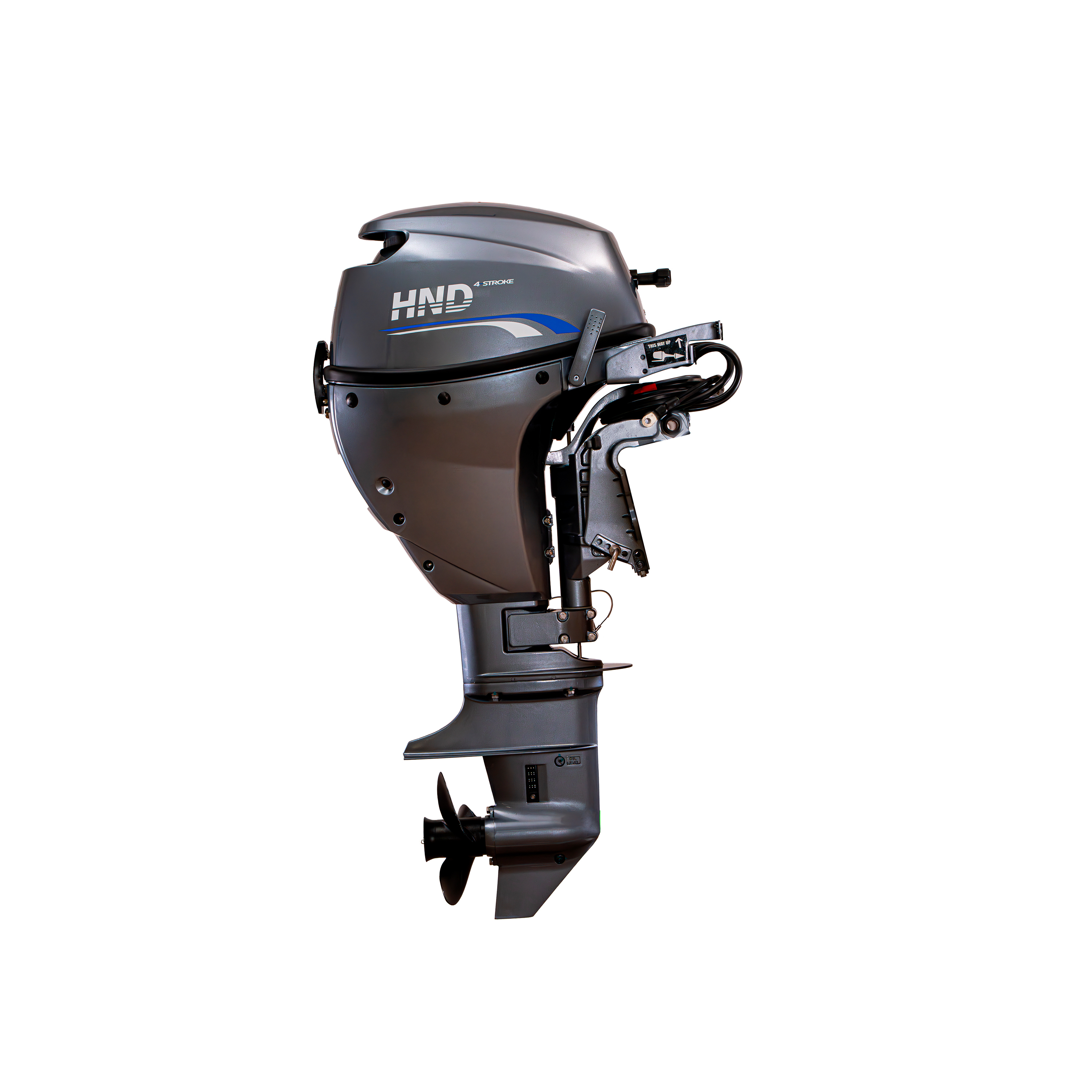 HND OB 9.9 FERS оснащен дистанционным типом управления с электростартером и коротким дейдвудом. Топливным баком емкостью 12 литров для комфортной заправки и водяным охлаждением лодочного мотора. Вращение гребного винта стандартное.