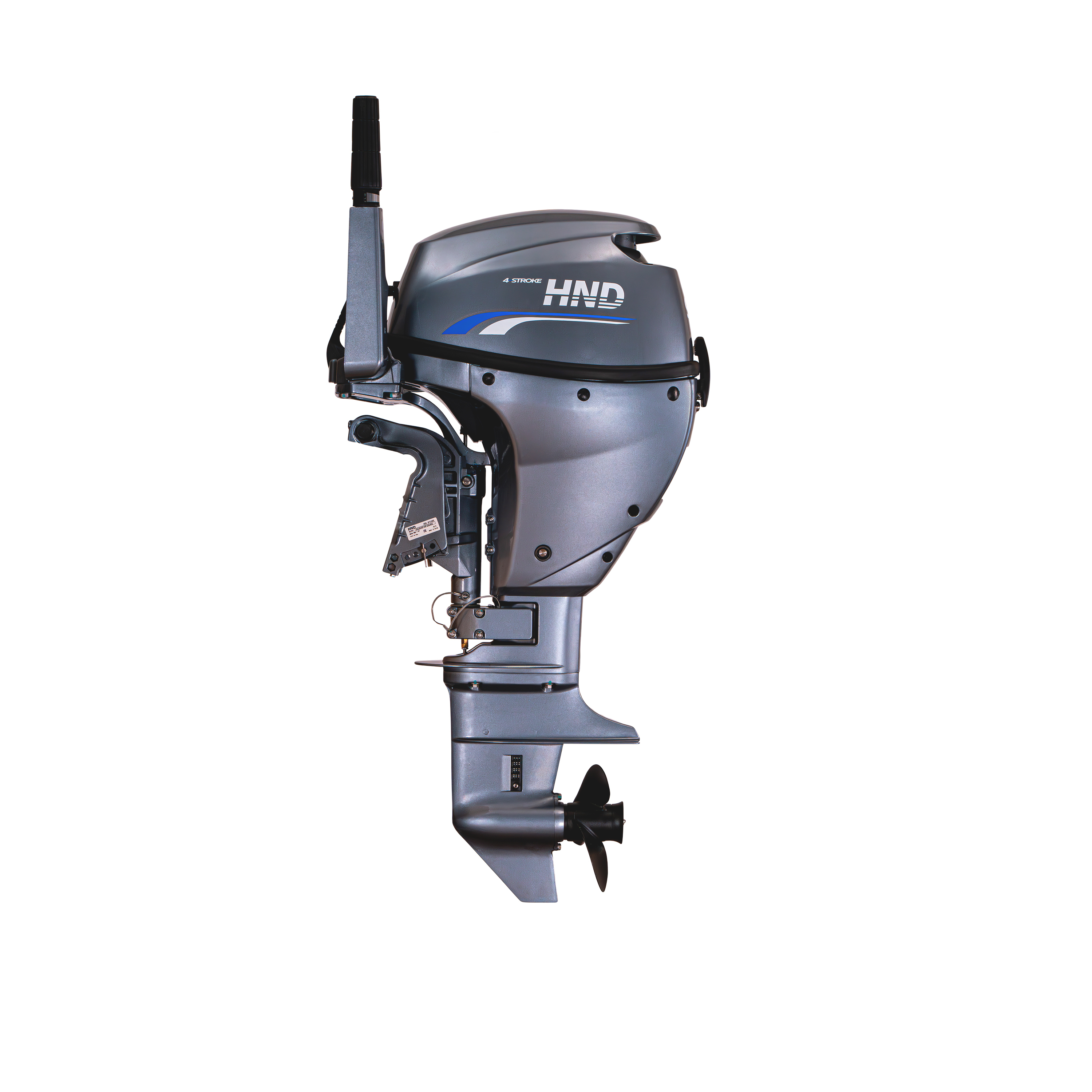 HND OB 9.9 FHS оснащен румпельным типом управления с ручным запуском и коротким дейдвудом. Топливным баком емкостью 12 литра для комфортной заправки и водяным охлаждением лодочного мотора. Вращение гребного винта стандартное.