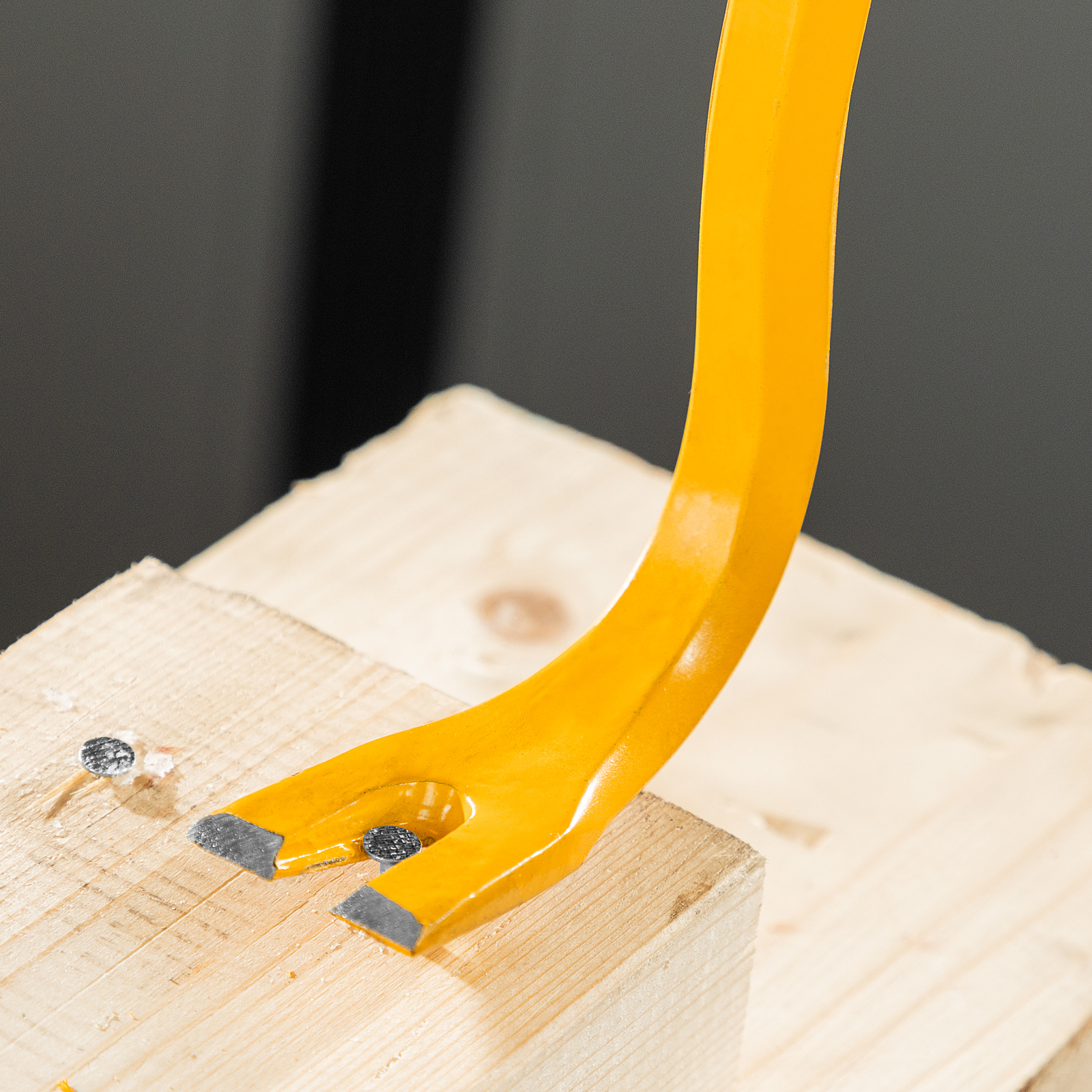 - Яркий цвет — лом-гвоздодер хорошо заметен среди других инструментов.