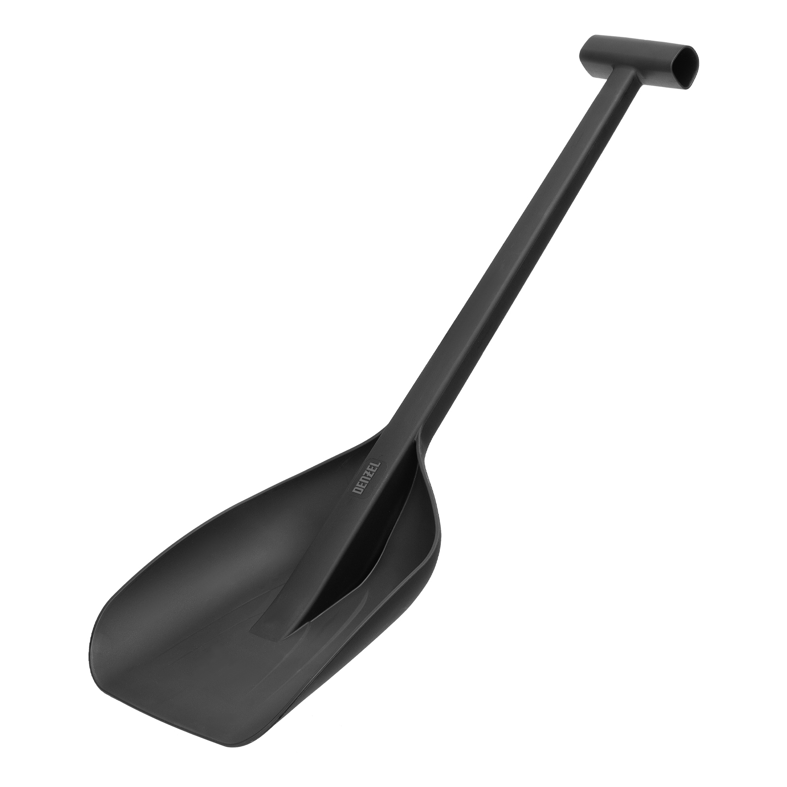 - Комфорт в использовании — лопата весит 0,45 кг, Т-образная рукоятка обеспечивает надежный и удобный хват.