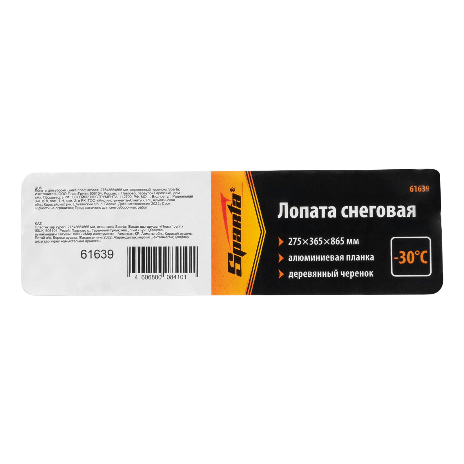 <p>Лопата Sparta 61639 размером 275 х 365 х 865 мм, с пластиковым ковшом и деревянным черенком, — надежный помощник при уборке снега. Вместительный углубленный ковш значительно ускоряет уборку. Черенок позволяет снизить нагрузку на спину. Лопата пригодится владельцам дачных участков и гаражей.</p><h2>Преимущества</h2><ul><li>Морозостойкость — рабочая часть из ударопрочного полипропилена выдерживает температуру до -30 ℃.</li><li>Износостойкость — специальная алюминиевая окантовка ковша защищает кромку от повреждений.</li><li>Вместительность — высокие бортики помогают удерживать снег внутри ковша.</li><li>Комфортная эксплуатация — инструмент весит 0,7 кг, дополнительная рукоятка обеспечивает удобный хват, что позволяет долго работать без ощущения усталости.</li><li>Компактность — за счет небольших размеров лопата легко помещается в багажник, ее удобно брать с собой.</li></ul>