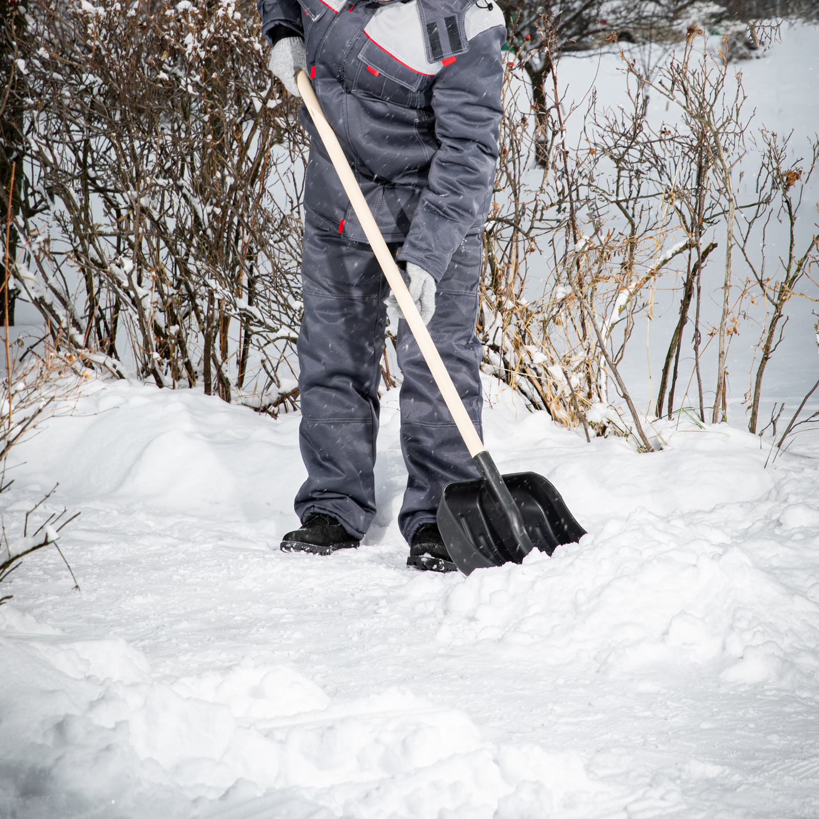 Лопата для уборки снега пластиковая, 360 х 405 х 1550 мм, деревянный черенок 1 сорт, Сибртех
