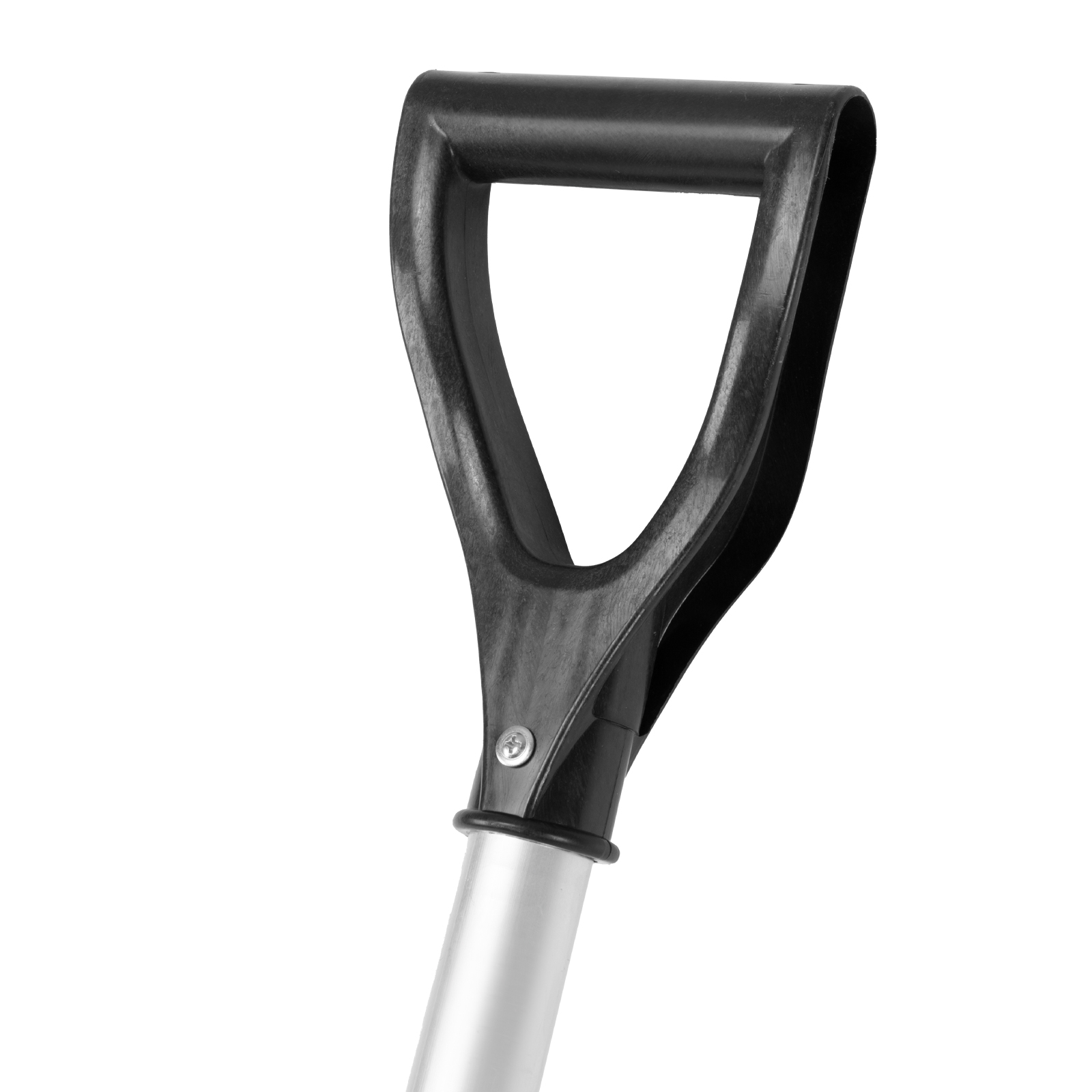- Алюминиевый черенок оснащен дополнительной рукояткой для комфортной работы.