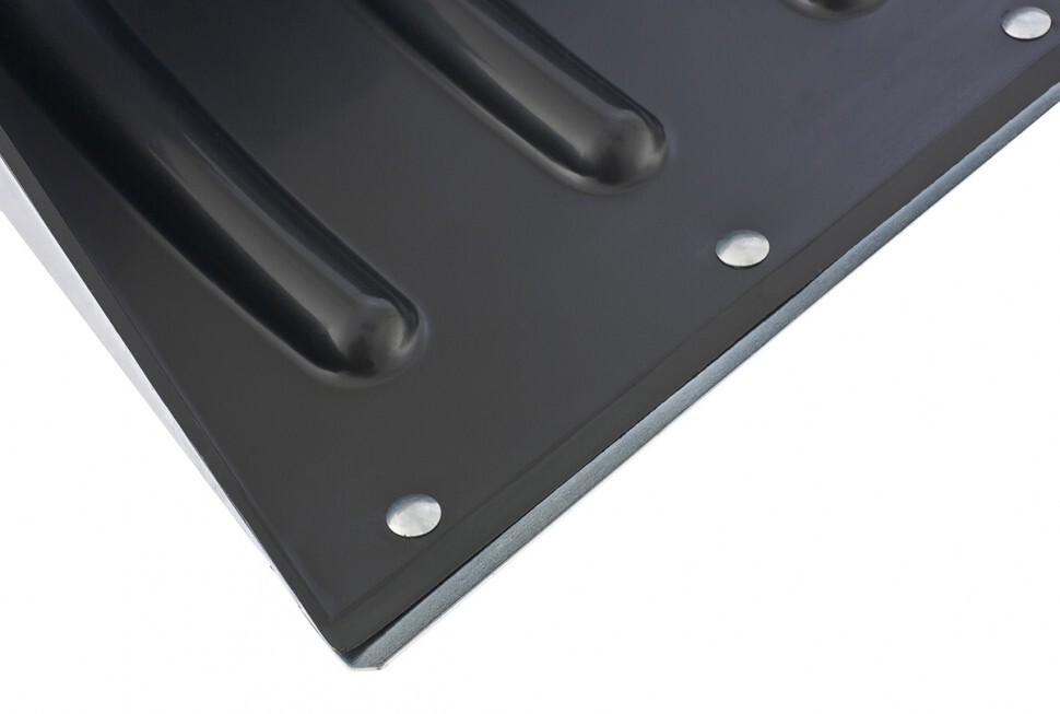 - Эффективная работа — углубленный ковш с бортиками вмещает много снега, а стальная защитная накладка предотвращает износ кромки и облегчает очистку слежавшегося снега и наста.