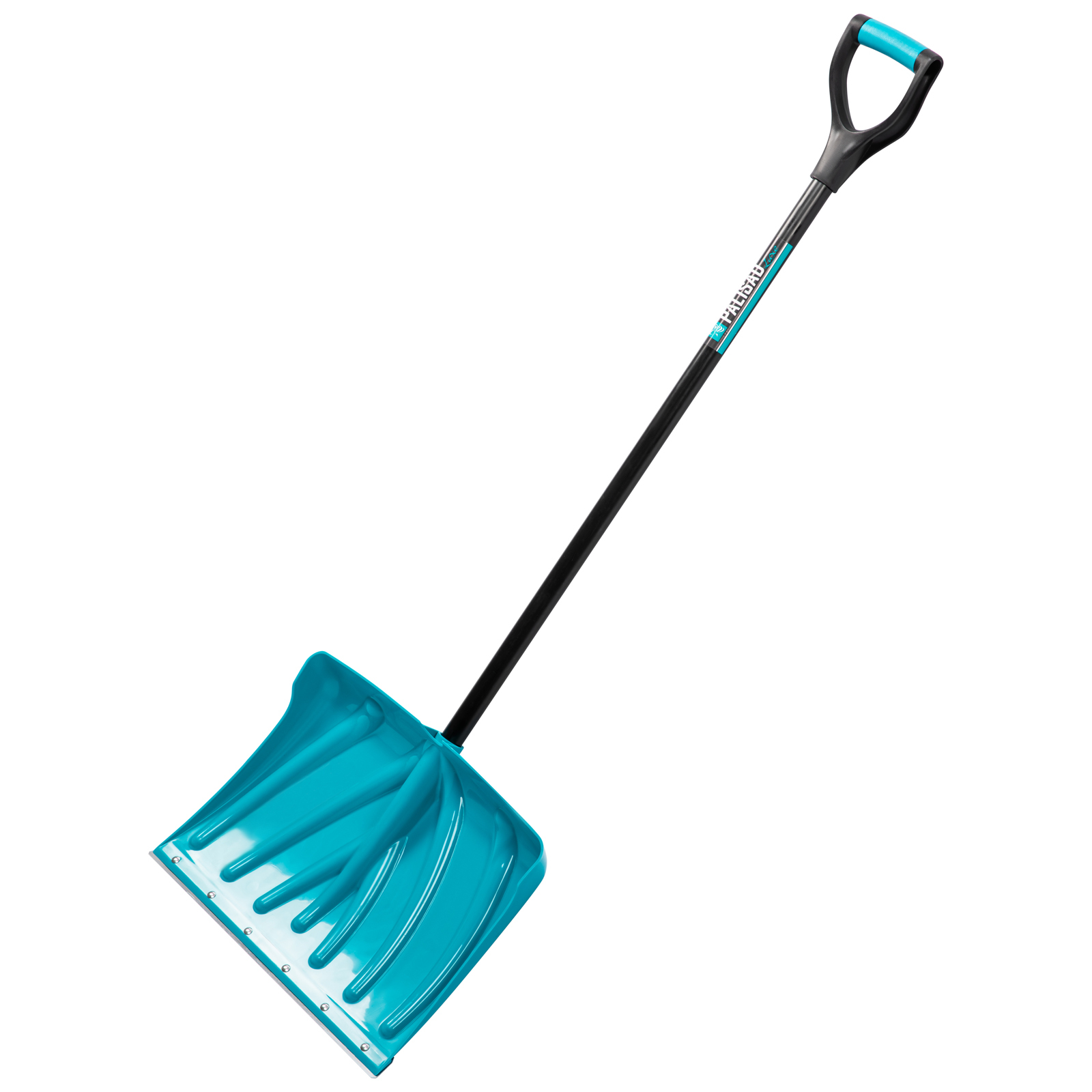 - Эффективная работа — углубленный ковш с бортиками вмещает много снега, а стальная защитная накладка предотвращает износ кромки и облегчает очистку слежавшегося снега и наста.