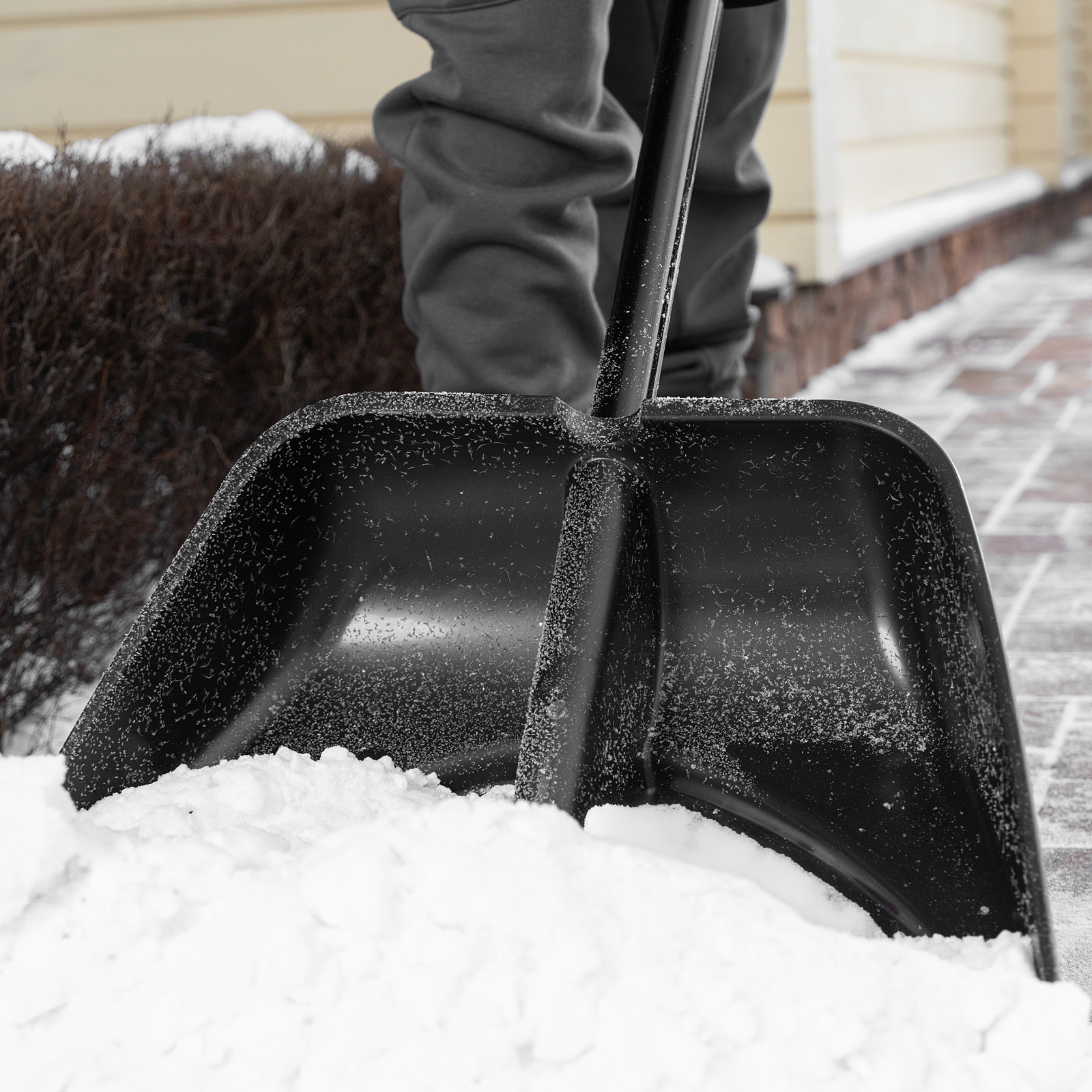 Пластиковая лопата для уборки снега Palisad PROFI 61607 с алюминиевым черенком, 550 х 415 х 1405 мм, используется для расчистки территории в зимний период. Благодаря алюминиевой накладке на кромке ковша инструмент эффективно справляется даже с плотным слежавшимся снегом и настом. Лопата весит всего 1,24 кг, поэтому с ней легко работать людям с разным уровнем подготовки. Инструмент пригодится при уборке придомовой территории, пространства перед гаражом или садового участка.