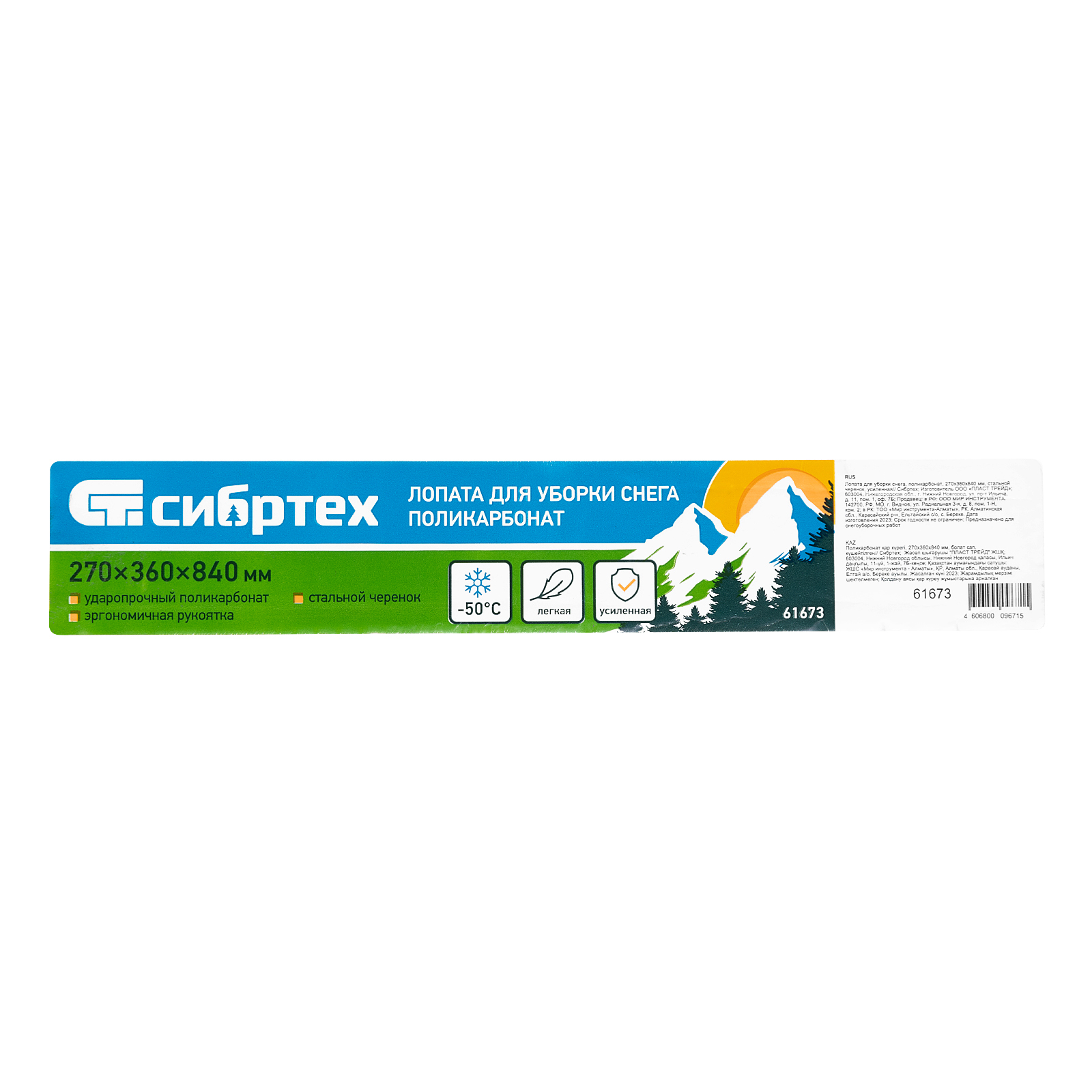 Лопата для уборки снега, поликарбонат, 270х360х840 мм, стальной черенок, усиленная Сибртех