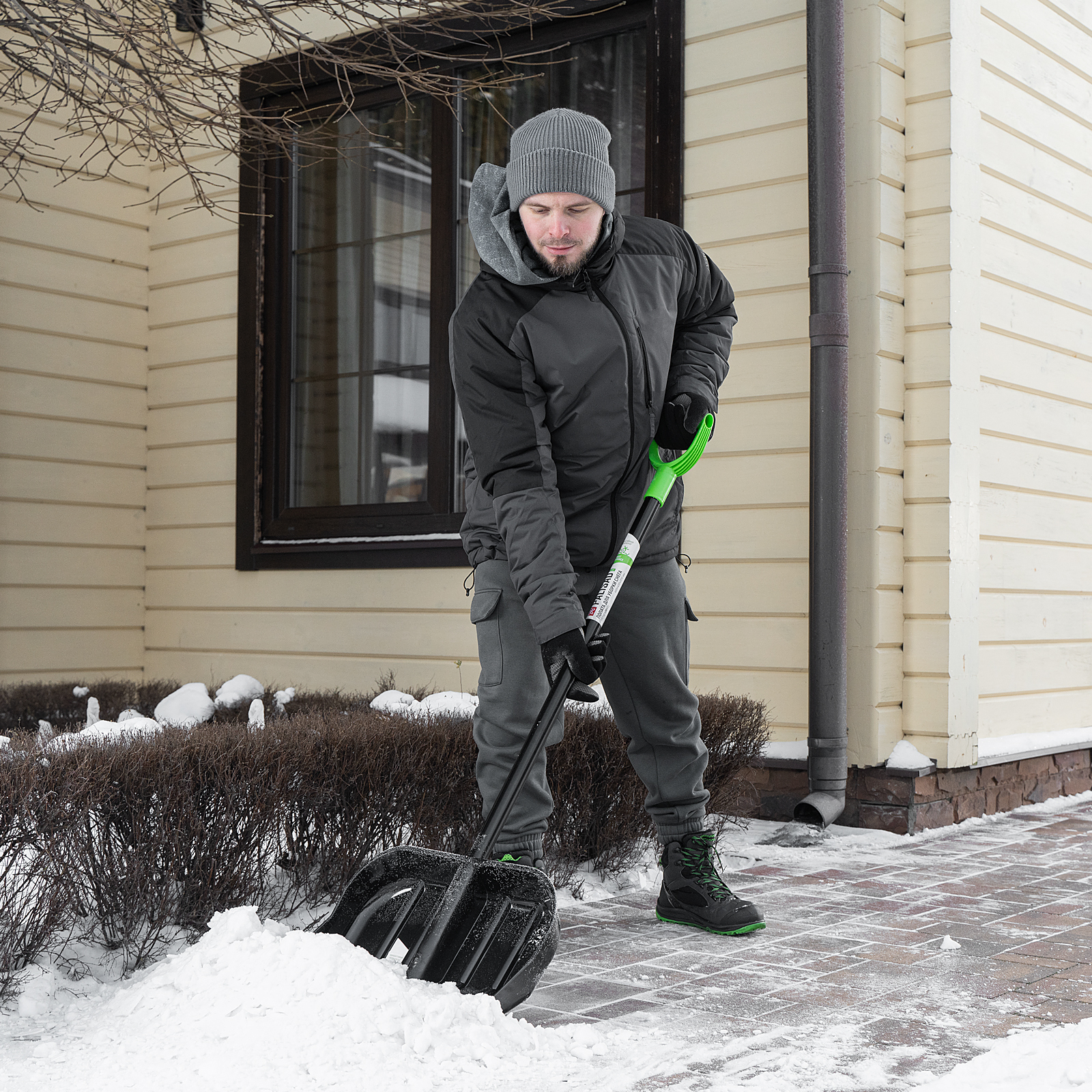 Лопата Palisad BASE 61644 размером 460 x 400 x 1370 мм, с ковшом из поликарбоната и стальным черенком, предназначена для уборки снега. Углубленный ковш вмещает большое количество снега, что значительно ускоряет и упрощает работу. Лопата позволяет быстро и эффективно расчистить садовую дорожку, тротуар, площадку перед гаражом и крыльцом и т.д.