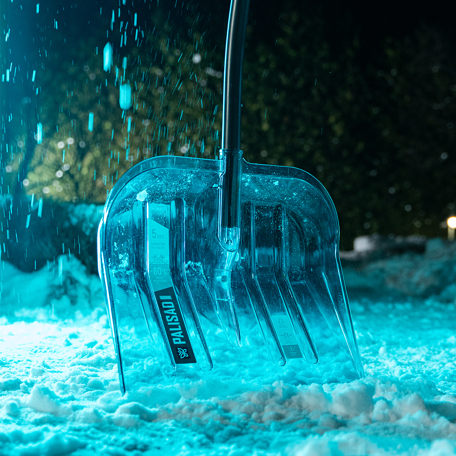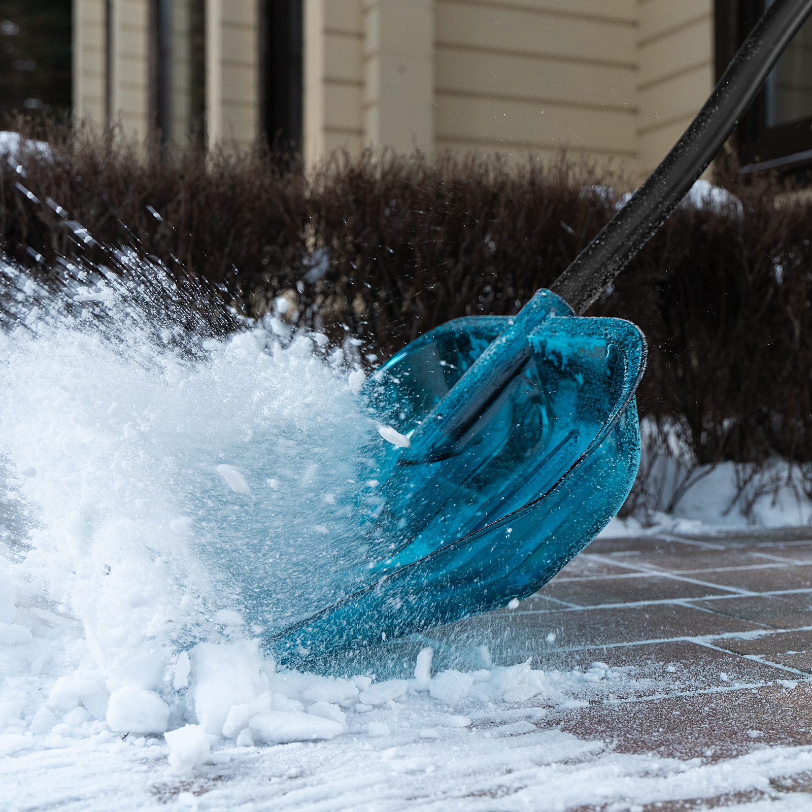 - Эффективность — благодаря заостренной усиленной кромке ковша лопатой можно убирать даже плотный слежавшийся снег.