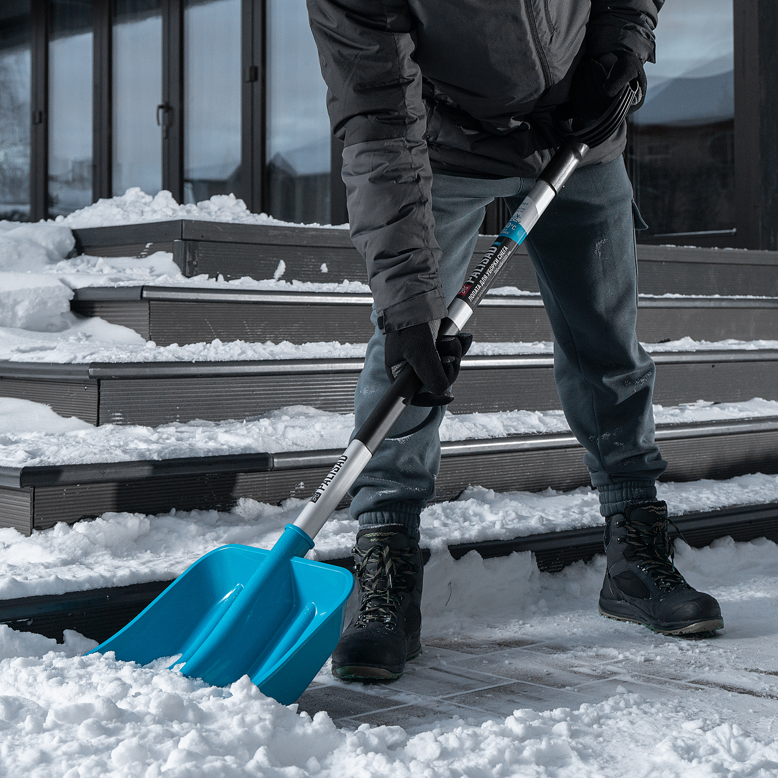 - Эффективная уборка плотного снега — алюминиевая планка защищает рабочую кромку от повреждений и износа.