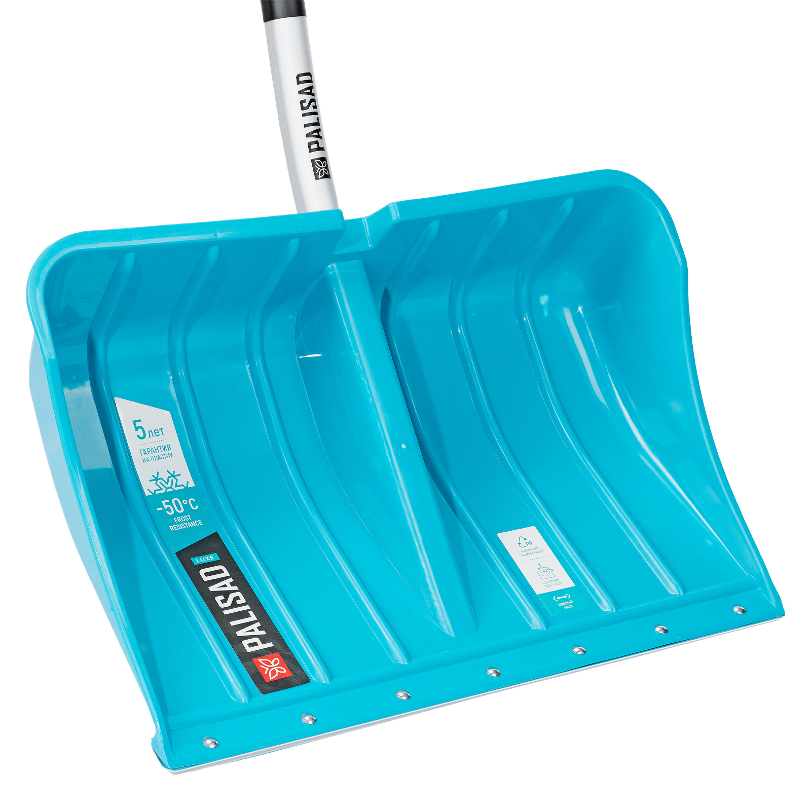 Лопата для уборки снега, полипропилен, 540х375х1420мм, алюминиевый черенок, ПВХ накладка, LUXE Palisad