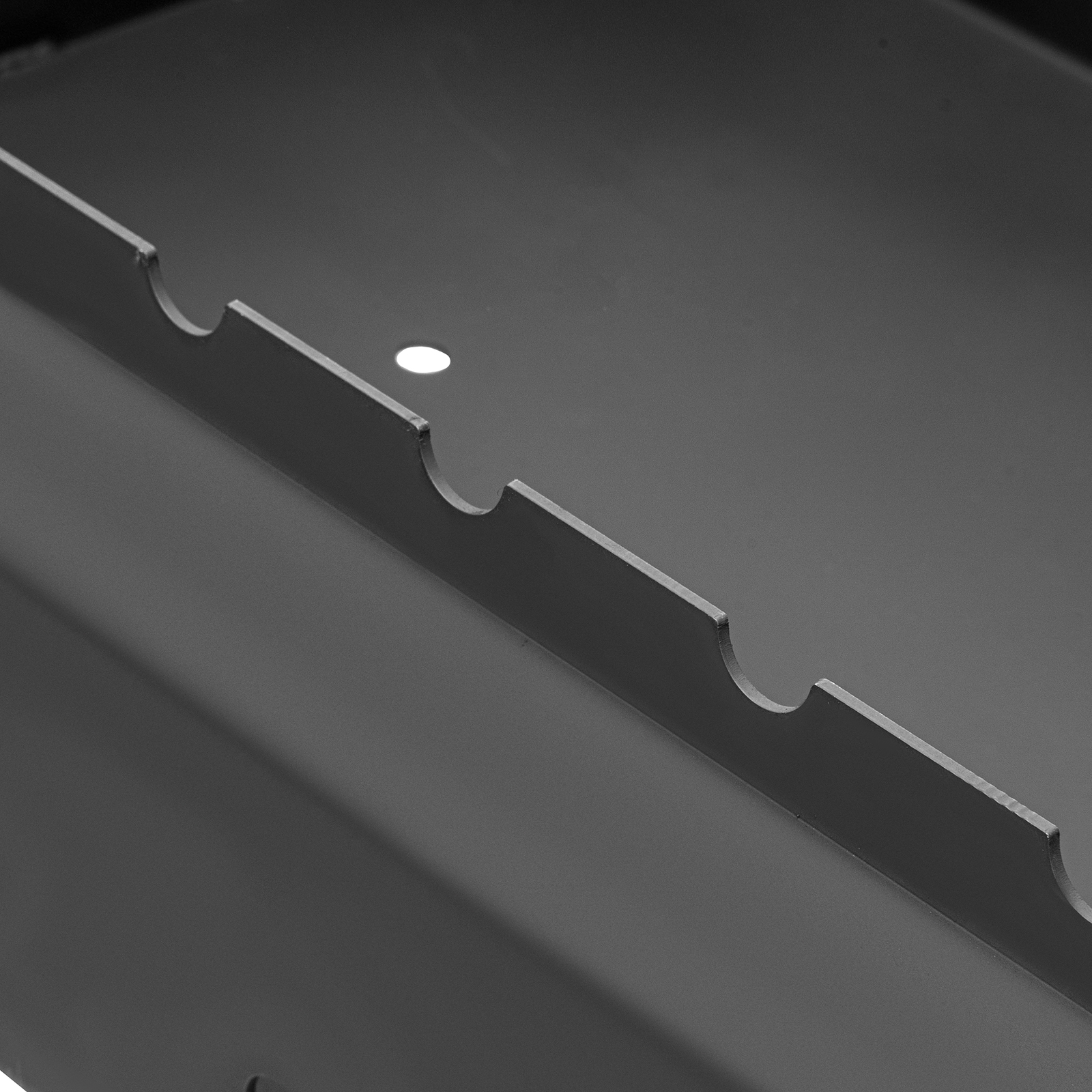 - Защита от коррозии — рабочая поверхность окрашена термостойкой краской, выдерживает нагрев до 700 °С, а ножки имеют порошковое покрытие.