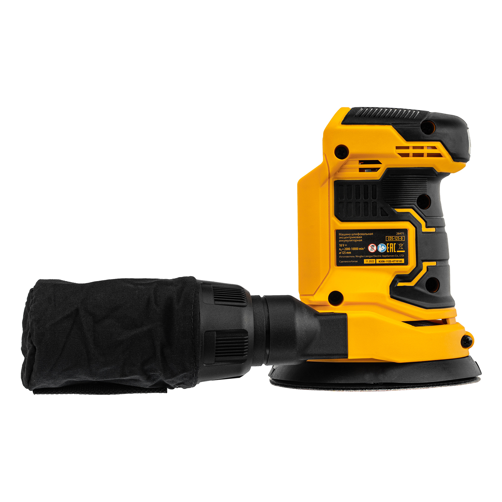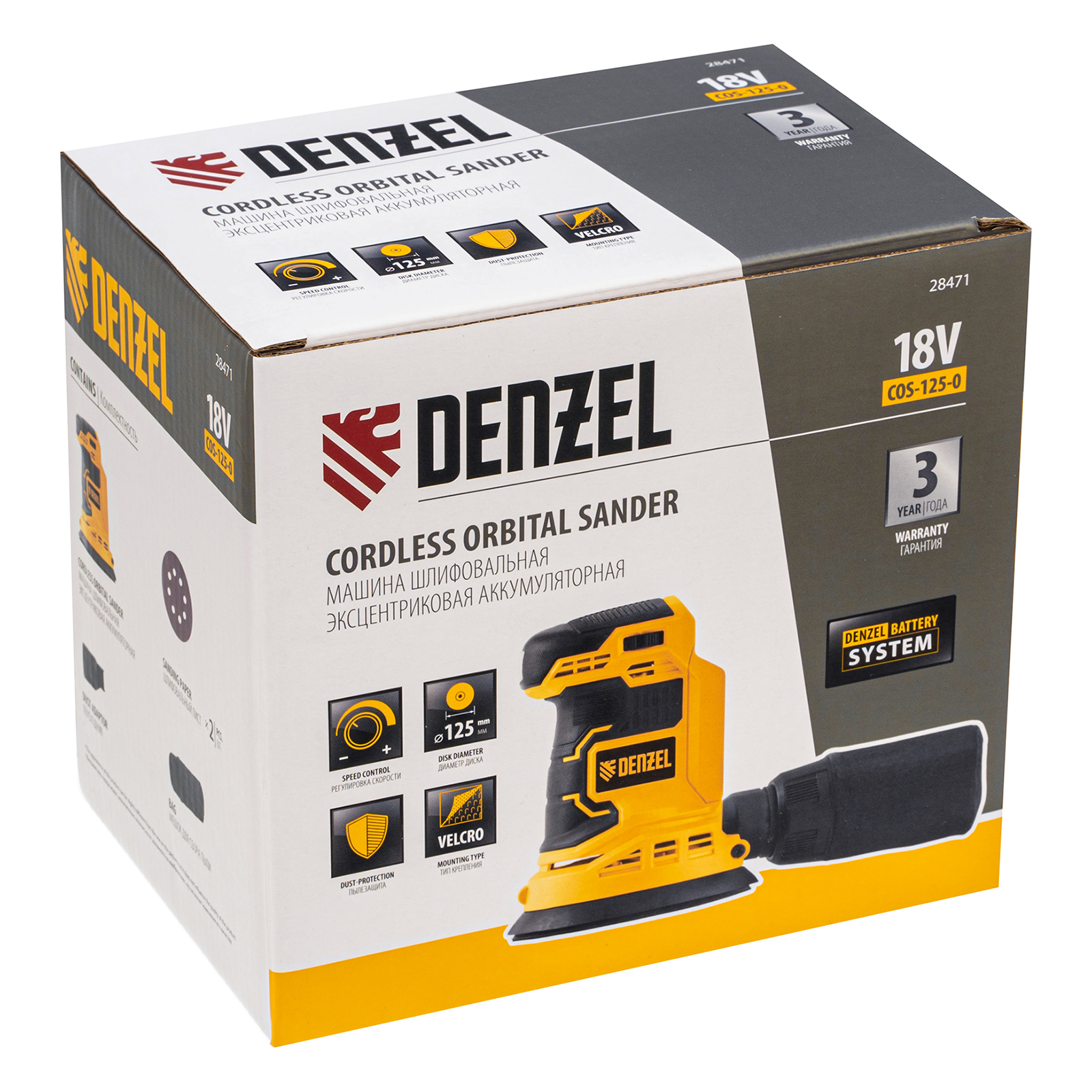 Машина шлифовальная эксцентриковая аккумуляторная COS-125-0, 18В Li-Ion Denzel