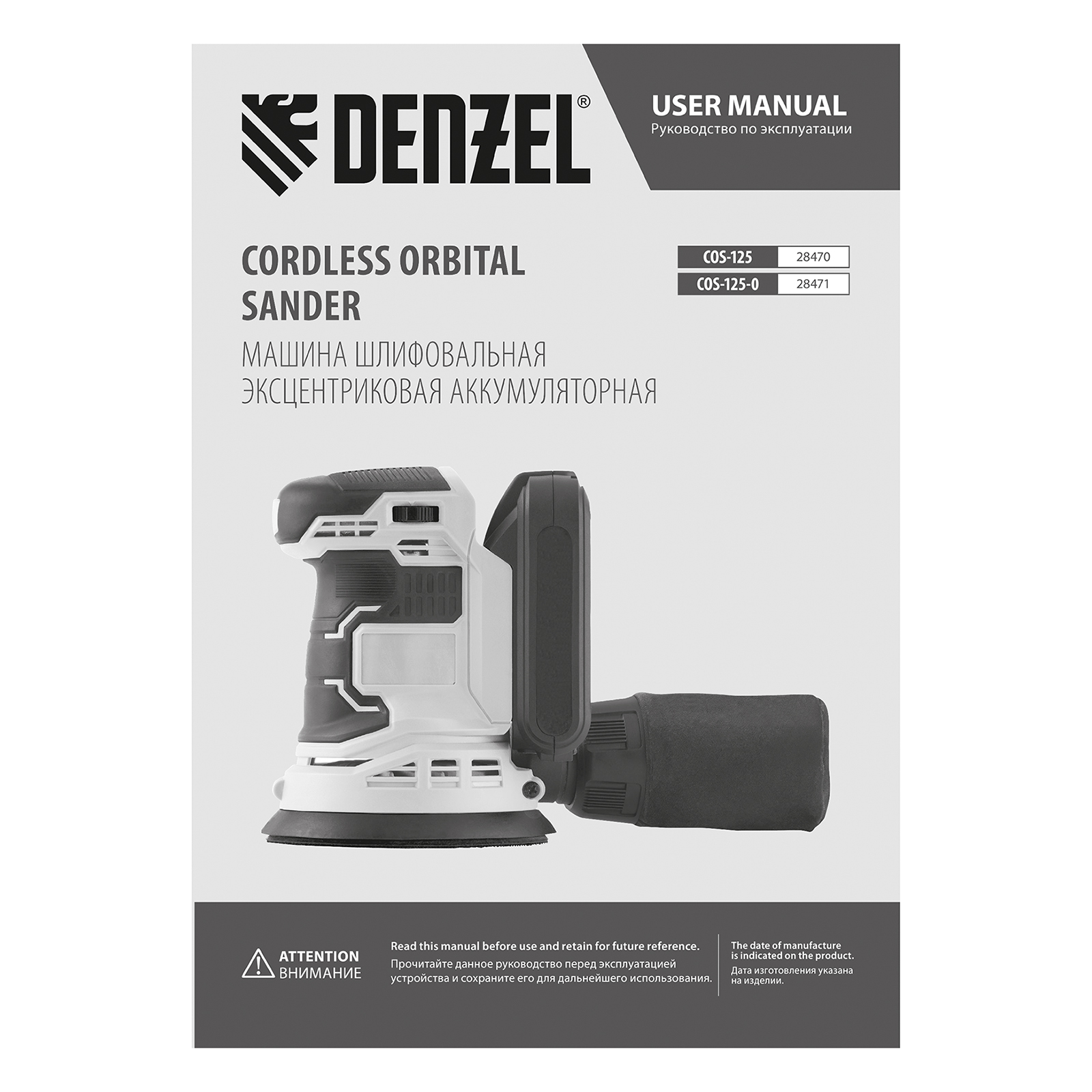 Машина шлифовальная эксцентриковая аккумуляторная COS-125, 18В Li-Ion Denzel