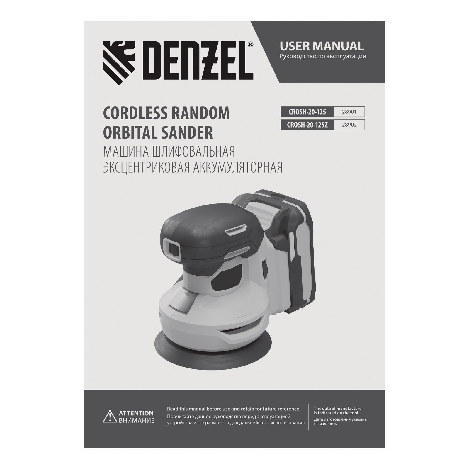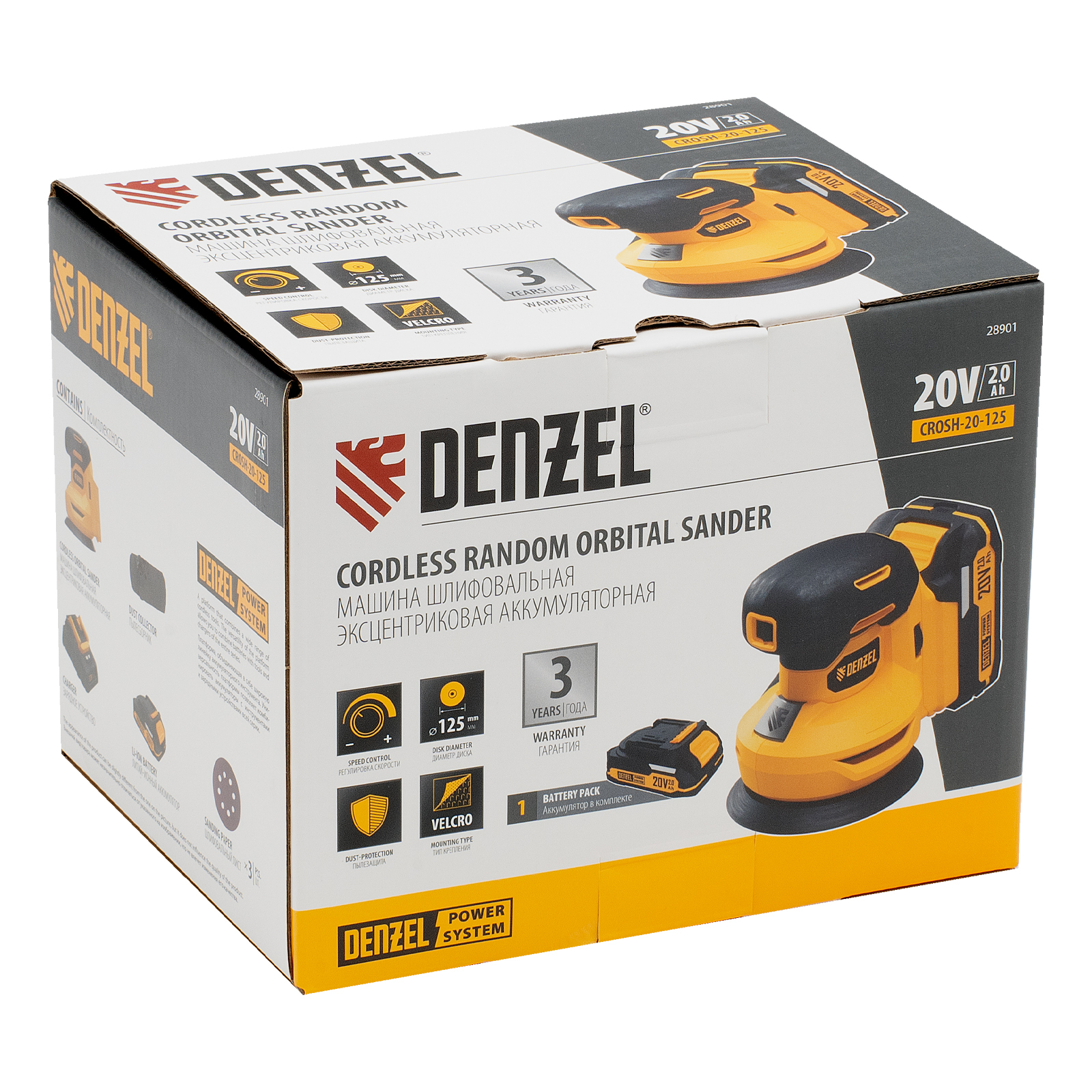 Машина шлифовальная эксцентриковая аккумуляторная CROSH-20-125, Li-Ion, 20 В// Denzel