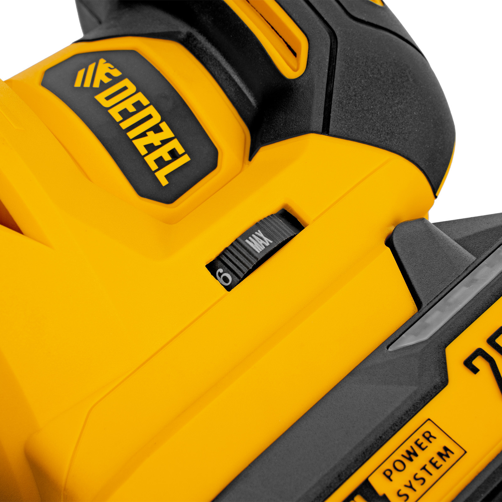 - Универсальность — аккумулятор Li-Ion емкостью 2 А·ч совместим со всеми инструментами единой платформы Denzel Power System 20V.