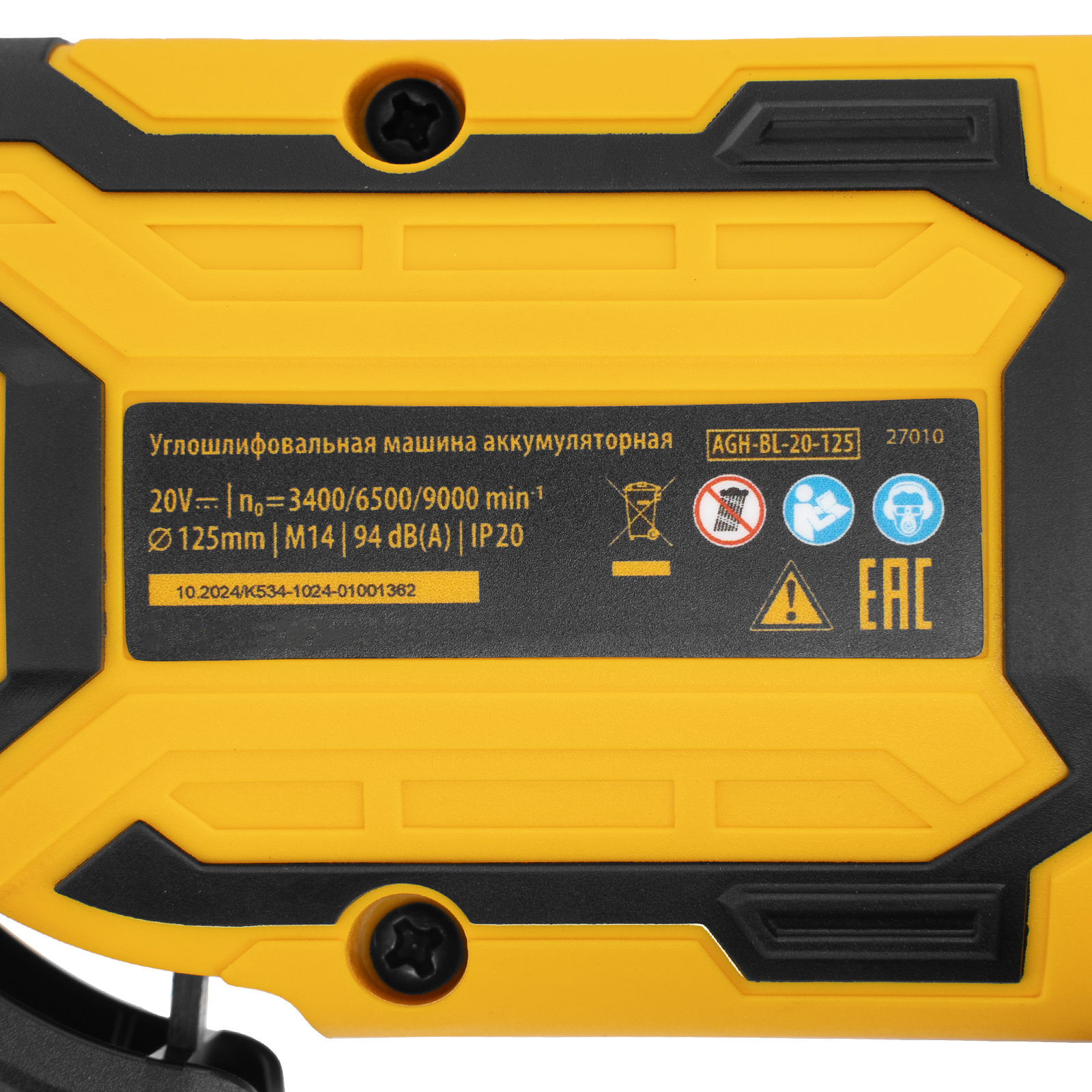 Машина шлифовальная угловая аккумуляторная бесщет. AGH-BL-20-125, Li-Ion, 20 В// Denzel