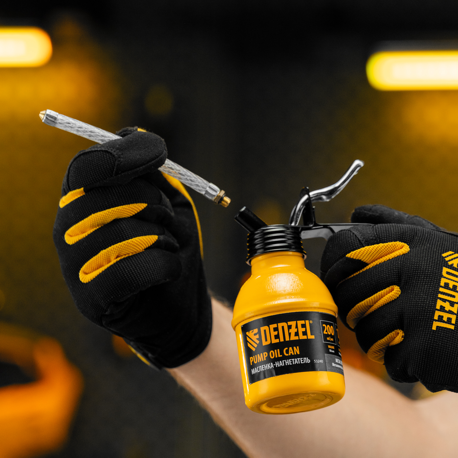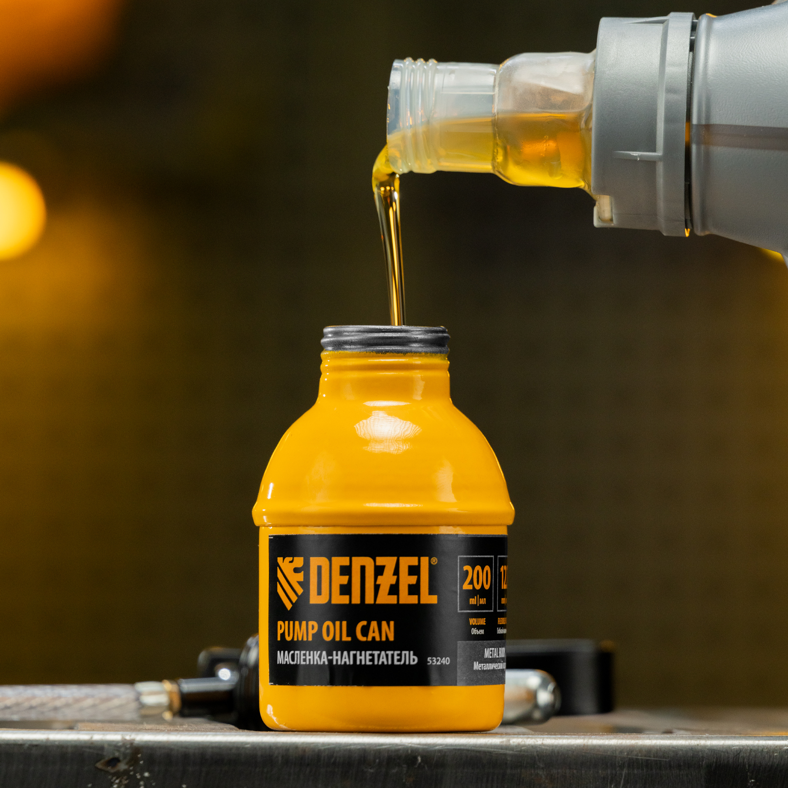 Масленка-нагнетатель Denzel 53240 вместительностью 0,2 л, с металлическим корпусом и гибким наконечником, предназначена для подачи смазочных материалов к движущимся частям механизмов.