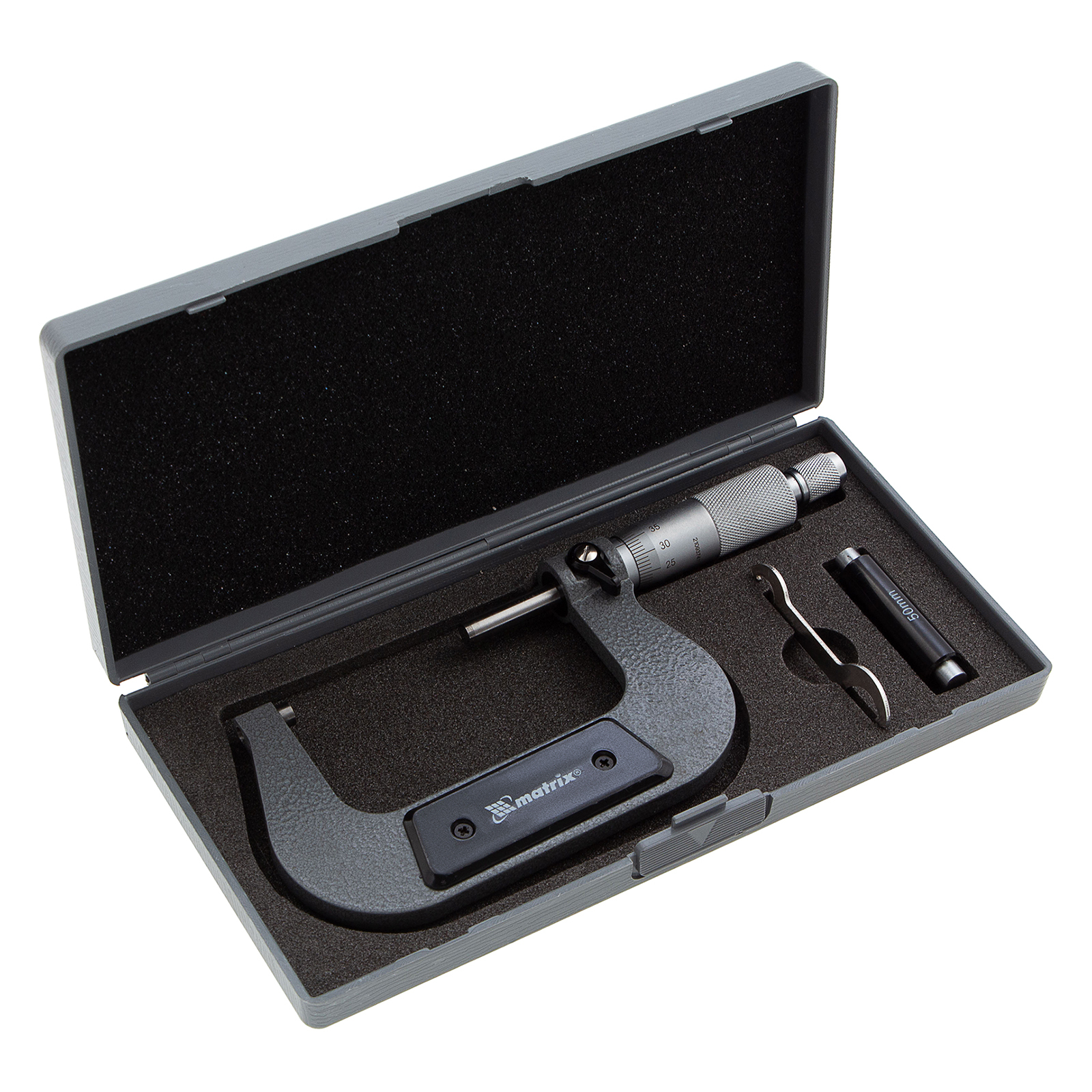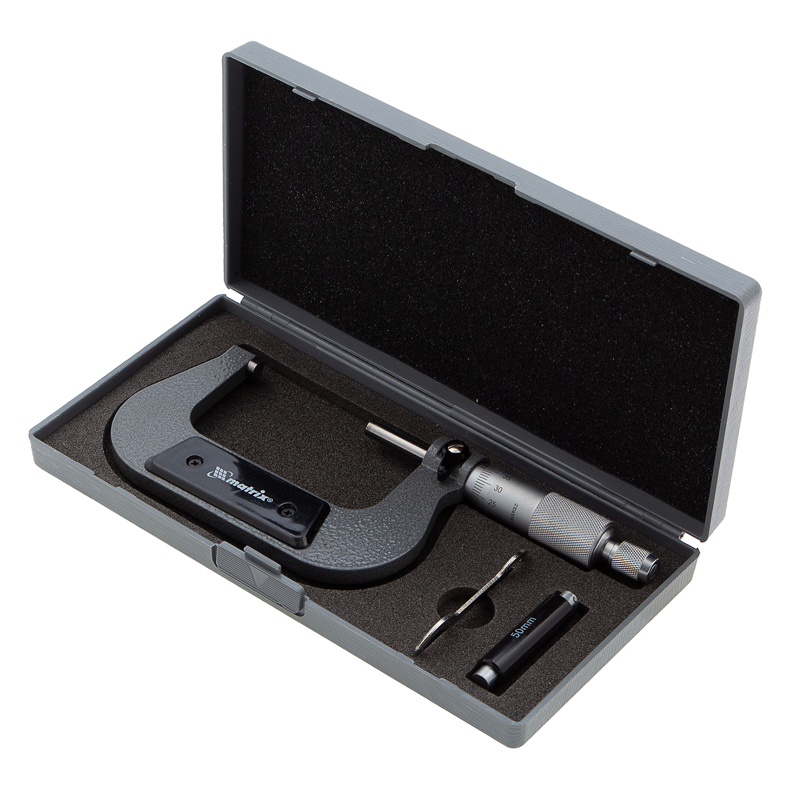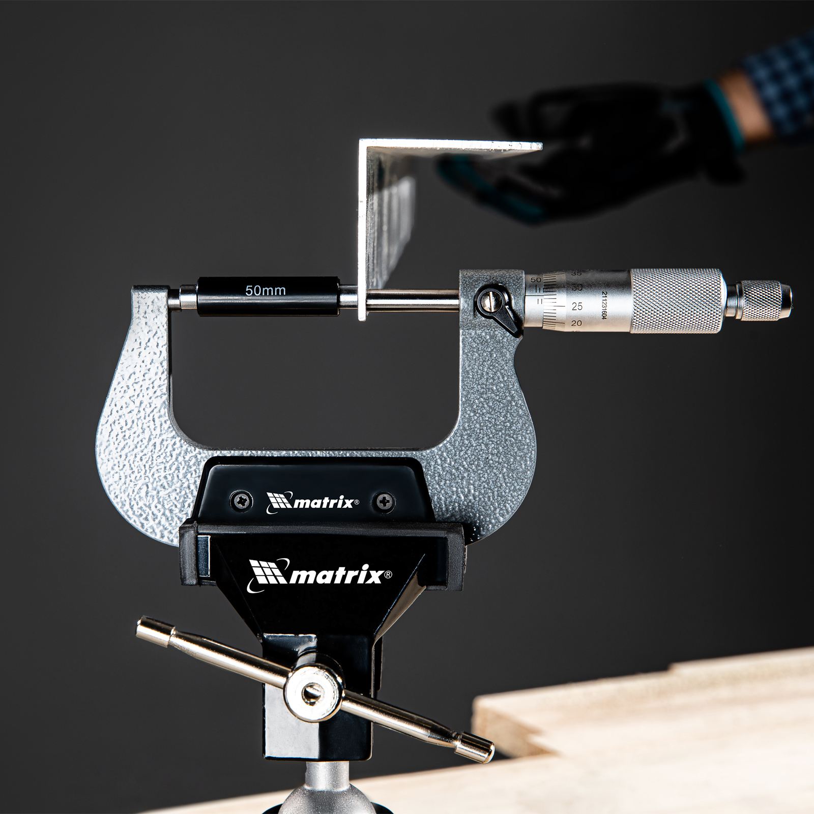 Микрометр механический Matrix 317755 используется для измерения толщины листового металла и деталей размером 50-75 мм. Обеспечивает высокую точность результатов — шаг измерения составляет 0,01 мм с допустимой погрешностью ±0,004 мм. Комплектуется установочной мерой, позволяющей при необходимости произвести настройку прибора. Микрометр будет полезен на производстве, в слесарной мастерской и автосервисе.
