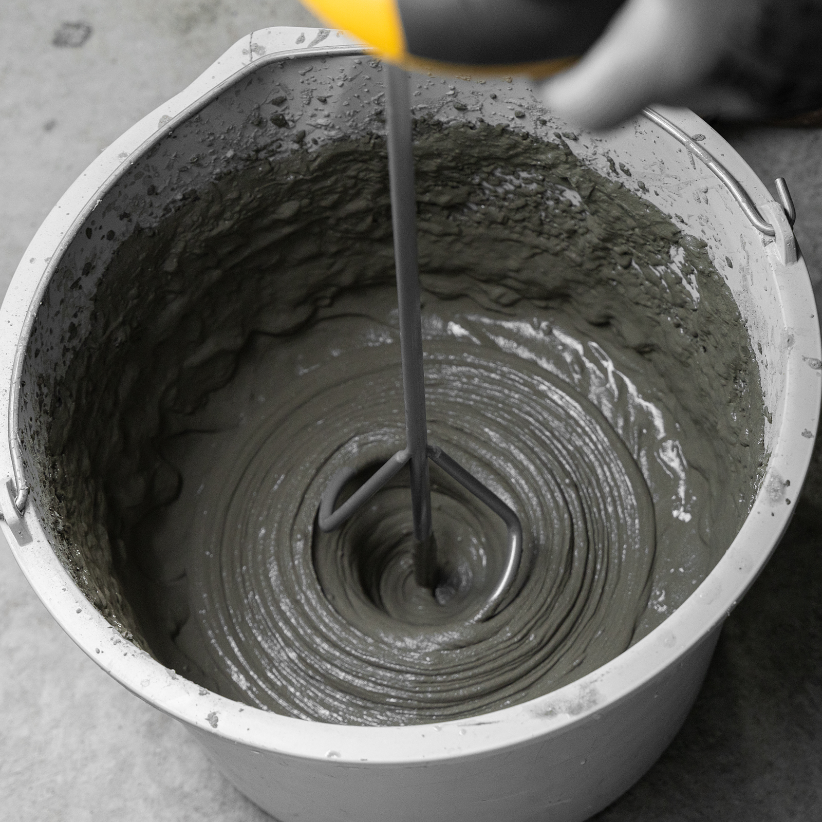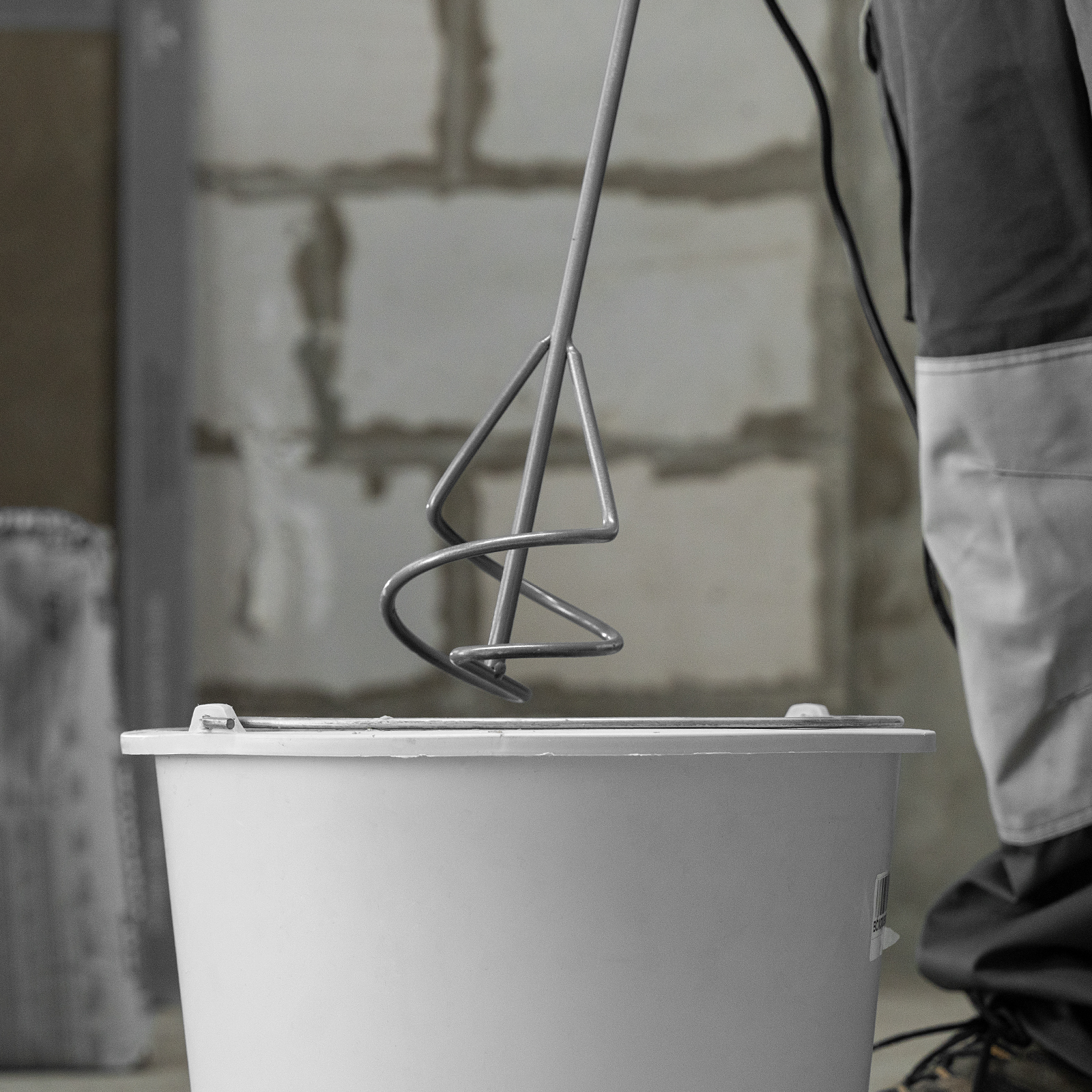 - Прочная сварная конструкция — стальной миксер выдерживает значительные нагрузки при размешивании густых составов.