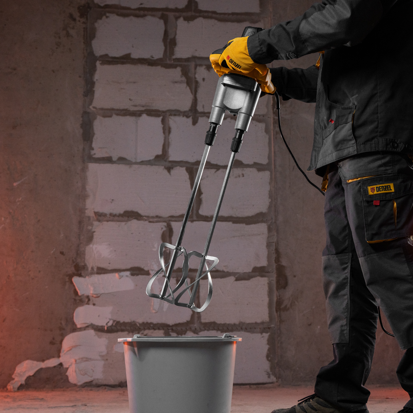 Миксер строительный Denzel EM-2-1600 27911 мощностью 1600 Вт используется в бытовых условиях для приготовления бетонных смесей, облицовочных растворов, клея для плитки и обоев, лакокрасочных материалов на скорости 200-480/250-680 об/мин. Максимальный крутящий момент 90 Н⋅м обеспечивает быстрое и равномерное смешивание растворов разной вязкости. Миксер предназначен для бытового применения.