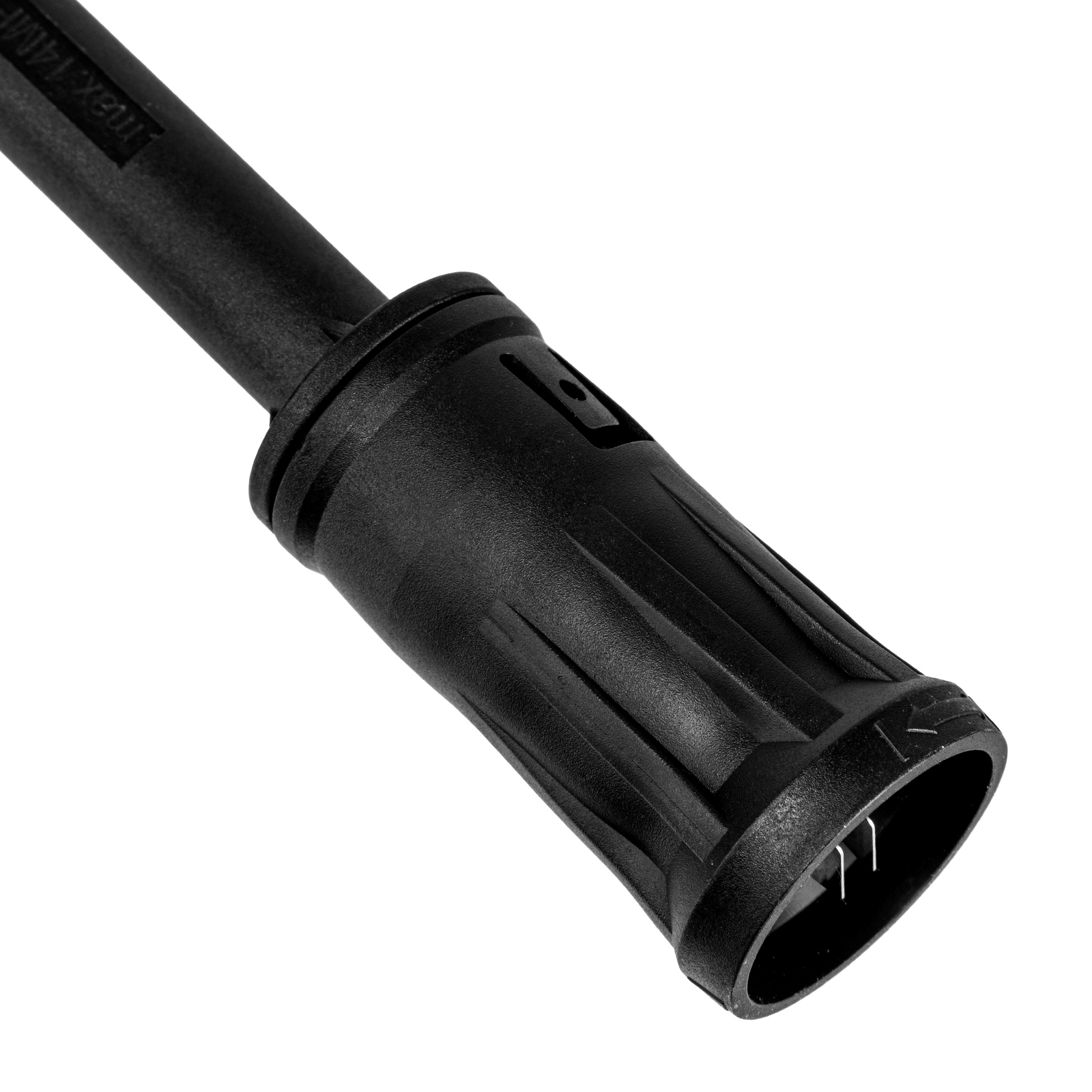 - Быстрая подготовка к работе — шланг соединяется с пистолетом в одно нажатие без применения инструмента и легко подключается к моечной машине через быстросъемный адаптер.