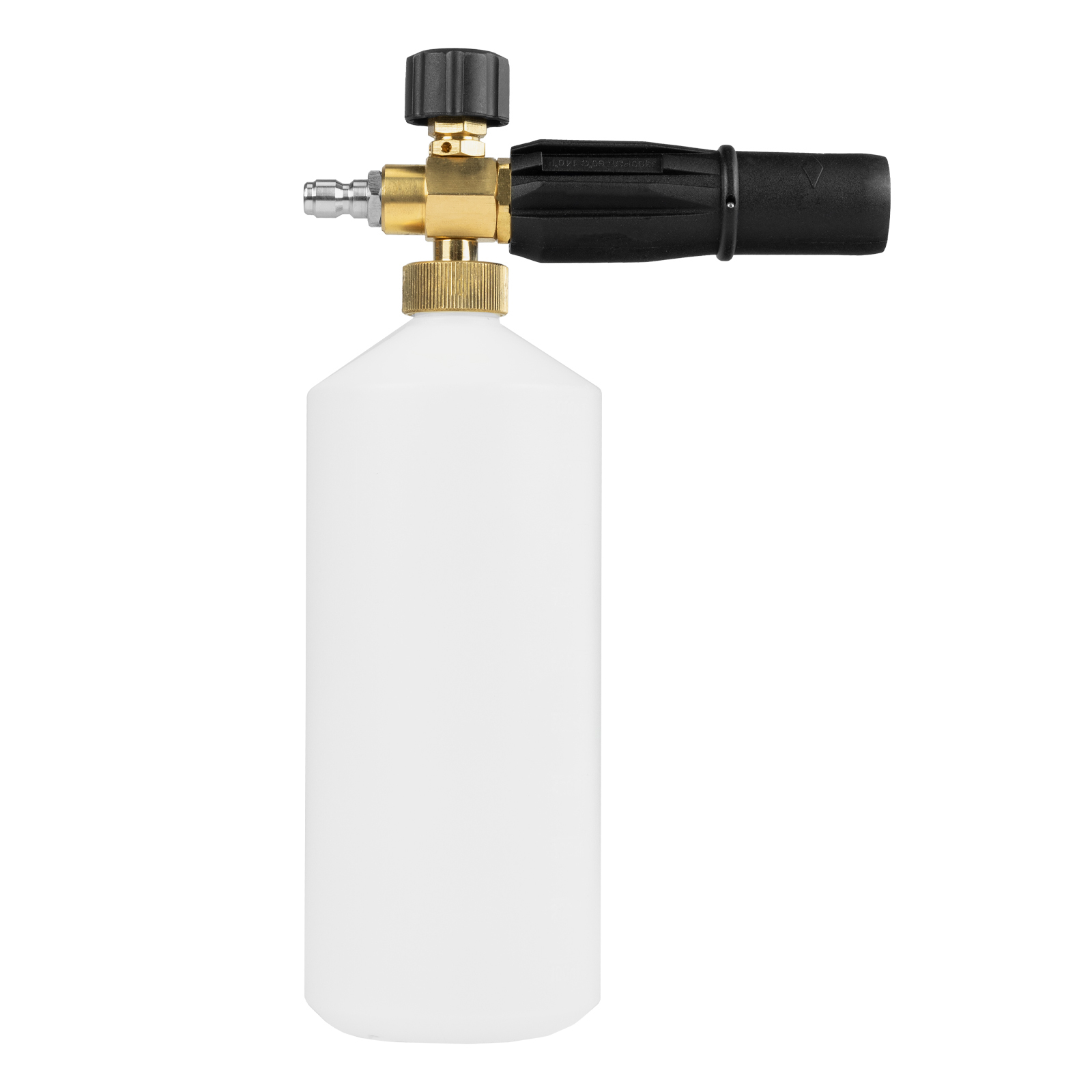 Мойка высокого давления - 1 штШланг высокого давления - 1 штПистолет моечный - 1 штНасадка-удлинитель - 1 штФорсунки - 4 штПеногенератор с бачком для моющего средства - 1 штВходной штуцер с фильтром - 1 штБыстросъемный коннектор шланга - 1 штИгла для прочистки сопла - 1 штИнструкция по эксплуатации с гарантийным талоном