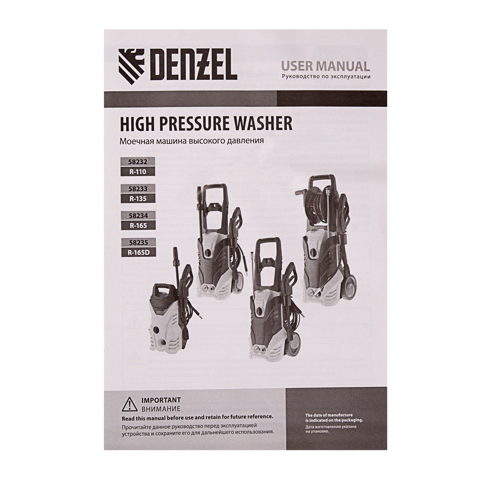 Моечная машина высокого давления R-165, 2200 Вт, 165 бар, 7 л/мин, колесная Denzel