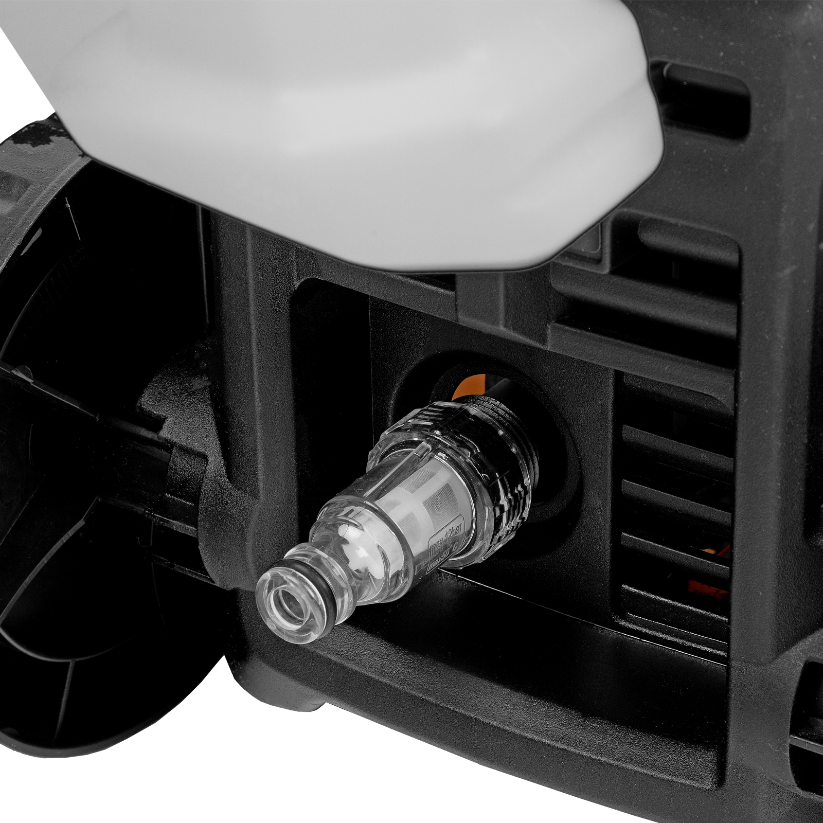 - Простая подготовка к работе — быстросъемный адаптер облегчает подключение шланга подачи воды.