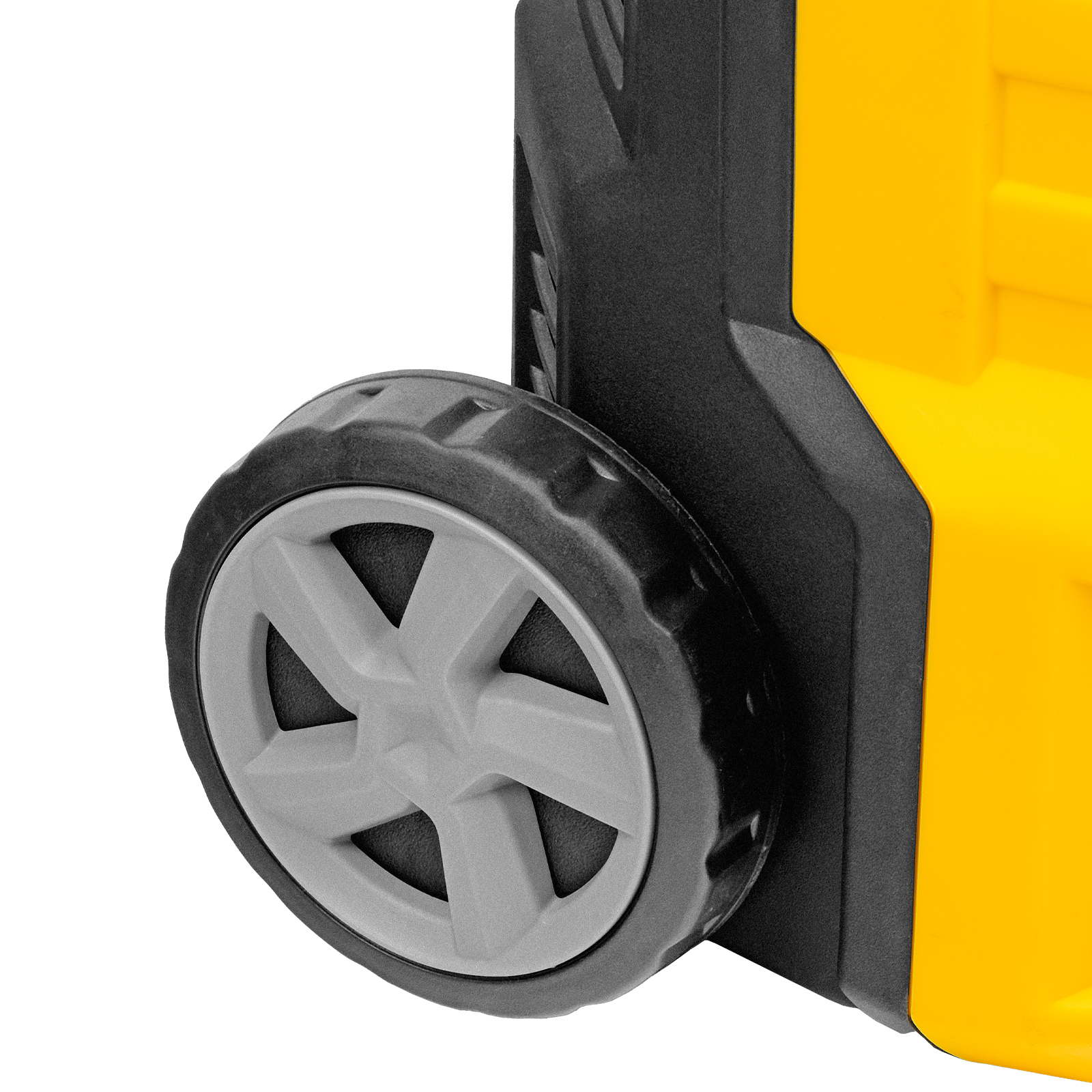 - Мобильность — благодаря рукоятке и колесам моечную машину удобно перемещать.