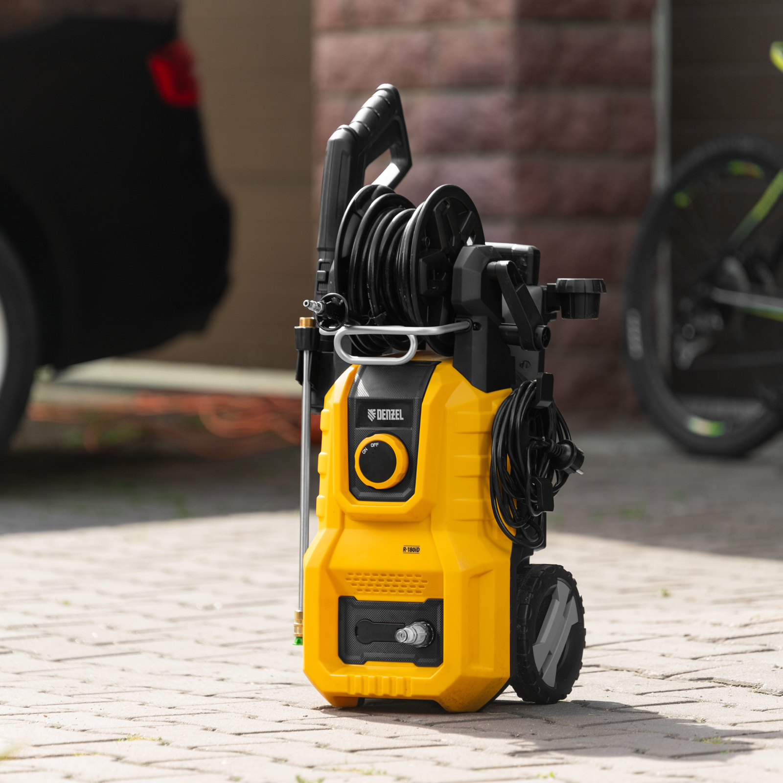 Моечная машина высокого давления Denzel R-180iD 58266 мощностью 2000 Вт, с барабаном и асинхронным двигателем, используется для мытья дорожек, тротуаров, фасадов зданий, автомобилей, окон, садовой мебели и инвентаря. Максимальное давление составляет 180 бар, производительность — 420 л/ч. Мойка подключается к водопроводной сети, а в случае ее отсутствия может забирать воду из любого открытого резервуара, работая в режиме самовсасывания. Надежная алюминиевая помпа со стальными плунжерами обеспечивает стабильное давление даже при длительном интенсивном использовании. Мойка высокого давления незаменима на дачном участке.
