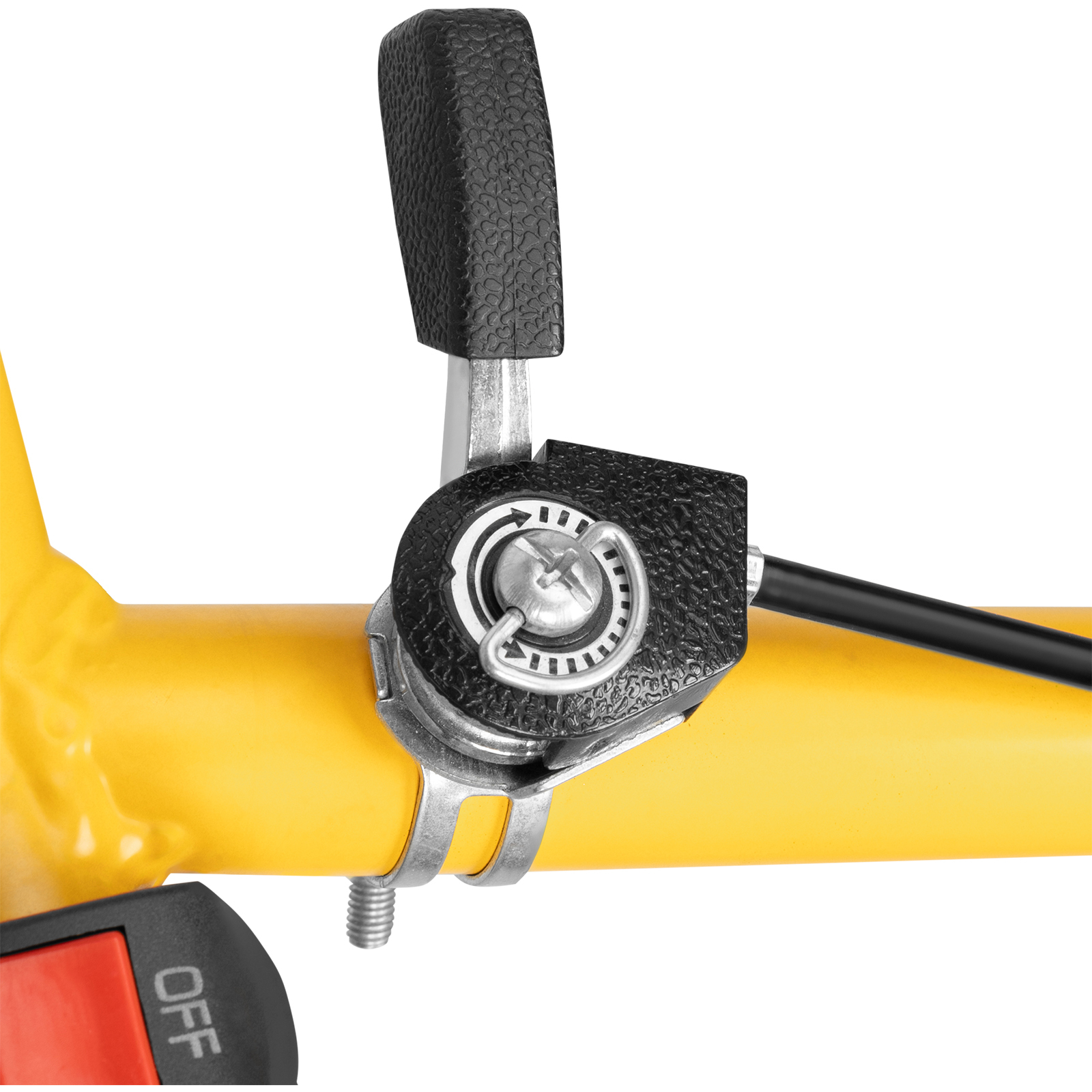 - Удобное управление — регулятор оборотов двигателя и рычаги сцепления расположены на руле, руль регулируется в двух плоскостях.