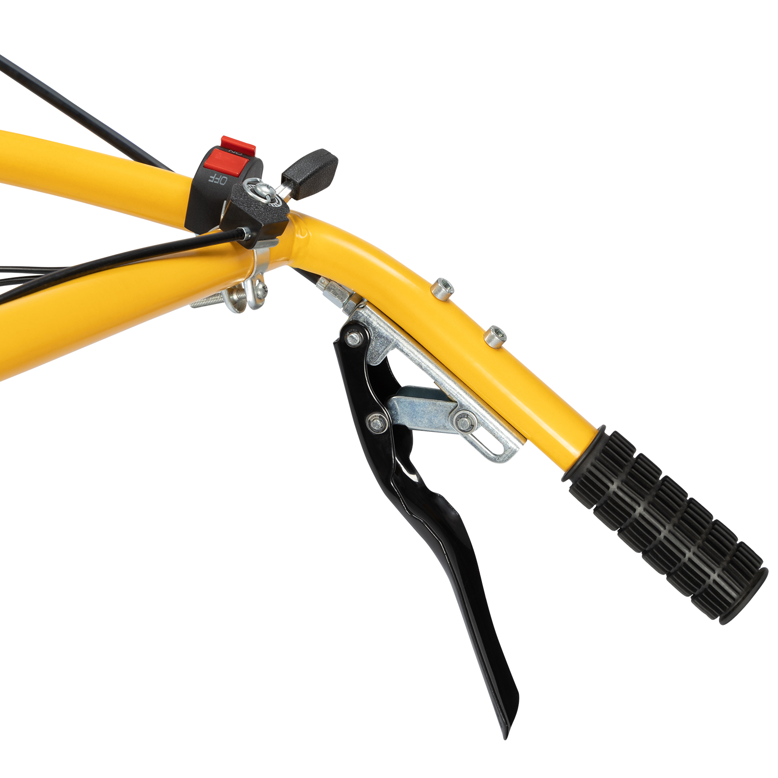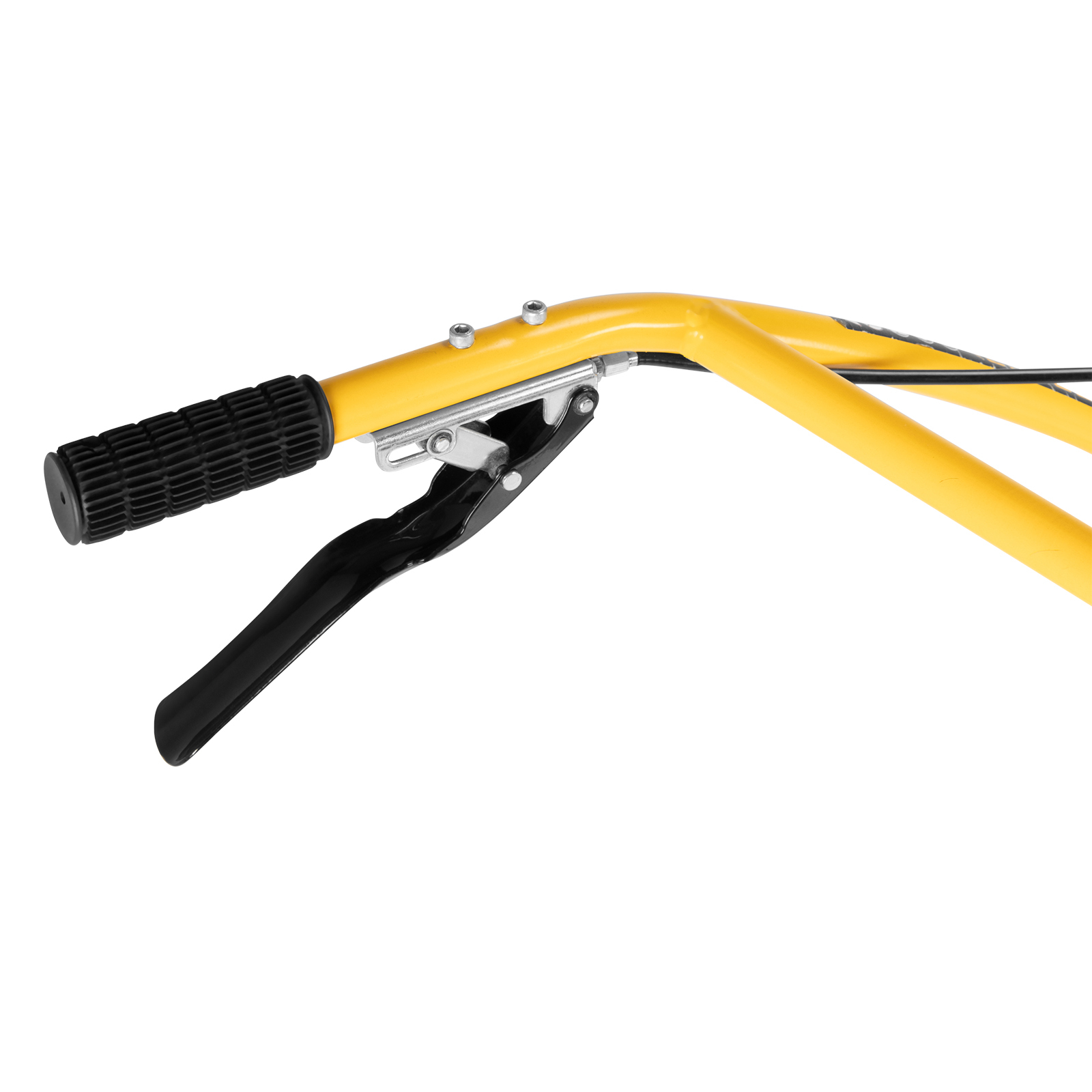 - Удобное управление — регулятор оборотов двигателя и рычаги сцепления расположены на руле, руль регулируется в двух плоскостях.