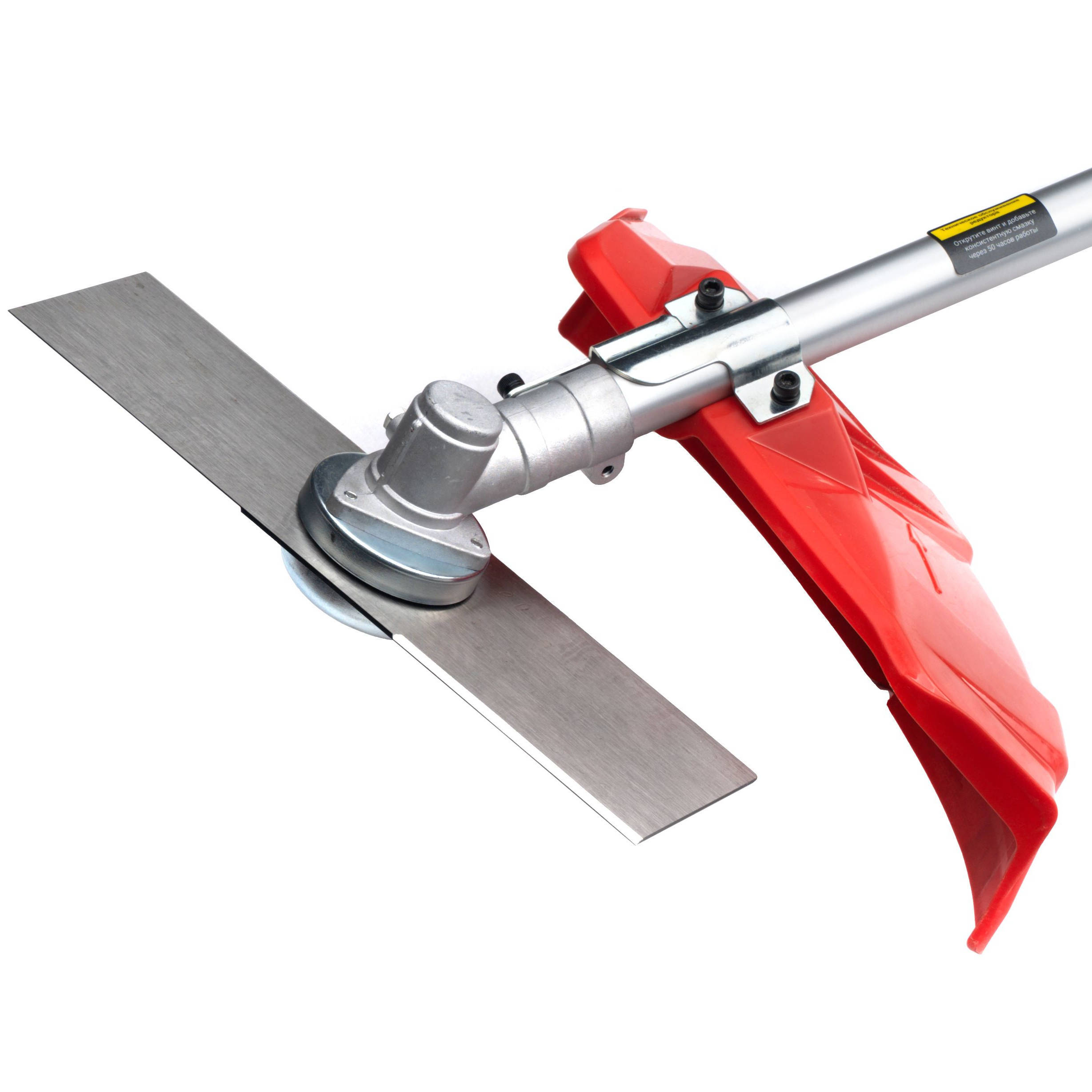 Выбирайте между леской и ножом в качестве режущей насадки, а диаметр режущей насадки составляет 280 мм, гарантируя эффективное устранение сорняков и кустарников.
