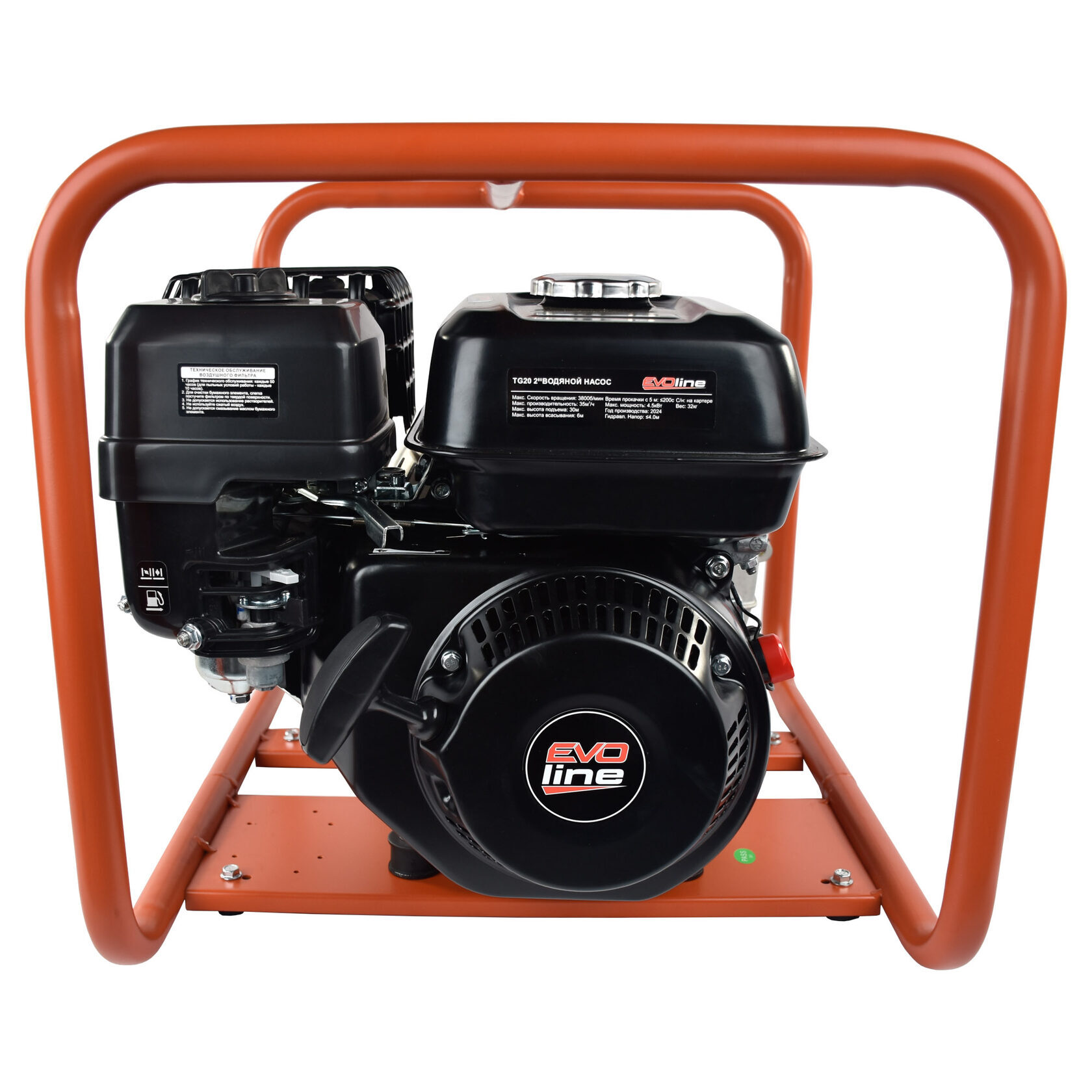 Водяная помпа EVOline TG 20 – бензиновая мотопомпа для грязной воды с мощностью двигателя 6 л.с. Силовым агрегатом данной модели является двигатель ZONGSHEN GB 200. Максимальная производительность водяного насоса составляет 600 л/мин, а высота всасывания - 8 м. Размер твердых частиц не должен превышать 17 мм.