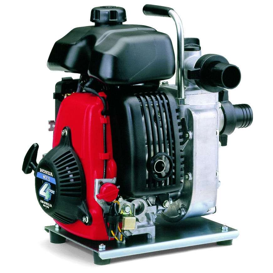 Мотопомпа HONDA WX 15 - вторая по величине и весу в модельном ряду мотопомп HONDA. Модель WX15 обладает небольшими габаритами ((ДхШхВ) 35,5х27,5х37,5 см) и имеет сухой вес всего 9,1 кг. При этом мотопомпа обеспечивает в два раза большую производительность (280 л/мин (16,8 м3/час)) чем младшая модель, а также снабжена системой остановки двигателя при критическом падении уровня масла. Эти характеристики делают мотопомпу HONDA WX 15 прекрасным выбором, как для частных пользователей, так и для профессионалов, которым необходима мобильность и достаточно высокая производительность насоса. Также, как и другие насосные станции Хонда, модель WX15 оснащается фирменным 4-х тактным двигателем собственного производства - HONDA GXH 50 (49 см3, 1,6 кВт (2,18 л.с.)) и бензобаком объёмом 0,77 л (обеспечивающим до 54 минут работы на одной заправке). Объём моторного масла, заливаемого в картер, составляет всего 0,25 л. Детали самого насоса также соответствуют самым высоким стандартам качества HONDA (крыльчатка насоса изготовлена из чугуна, а уплотнения из надёжных износостойких материалов).